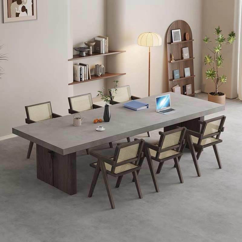 📚 全实木大型会议桌复古长条办公桌书桌极简工作台洽谈桌轻奢长餐桌