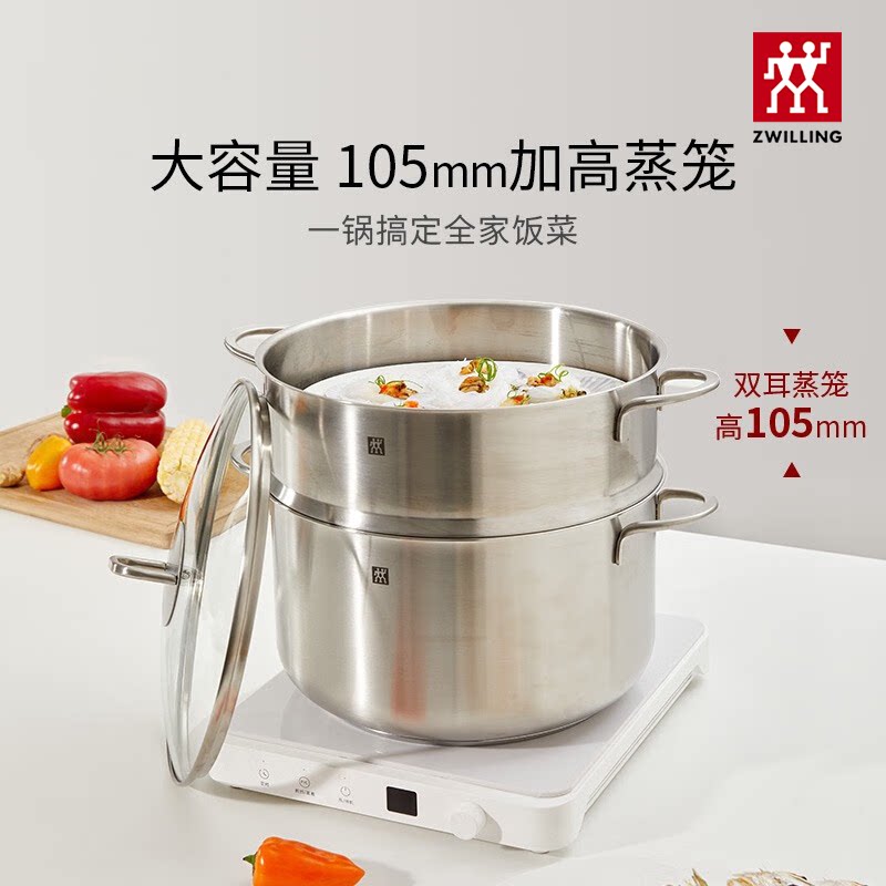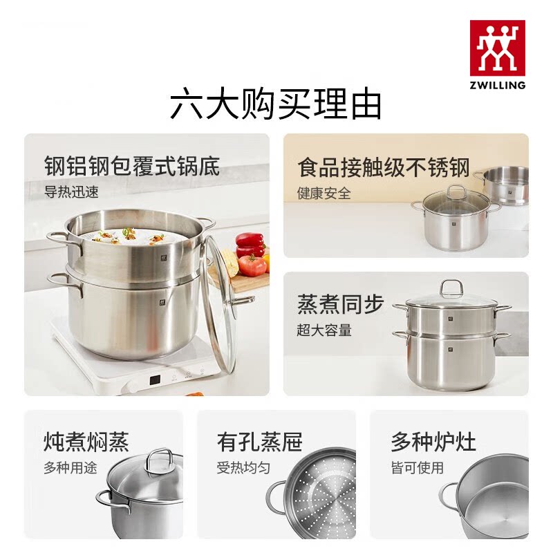 📚 德国双立人不锈钢28cm蒸锅汤锅家用食品级无涂层健康安全经久耐用
