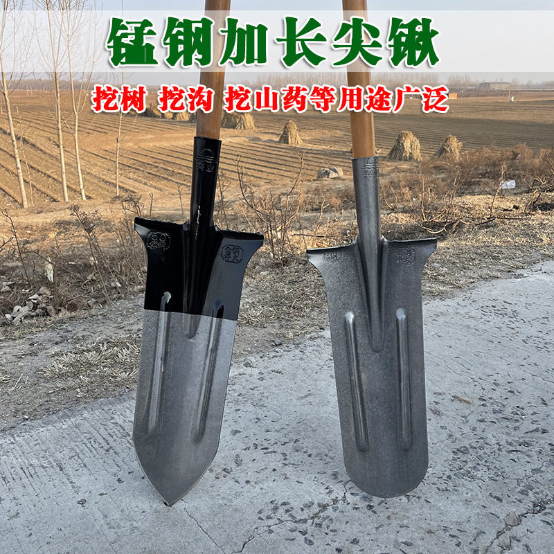 📚 锰钢深挖锹全钢加长尖头农用铲子挖树锹种菜挖沟铁锨挖山药铁锹