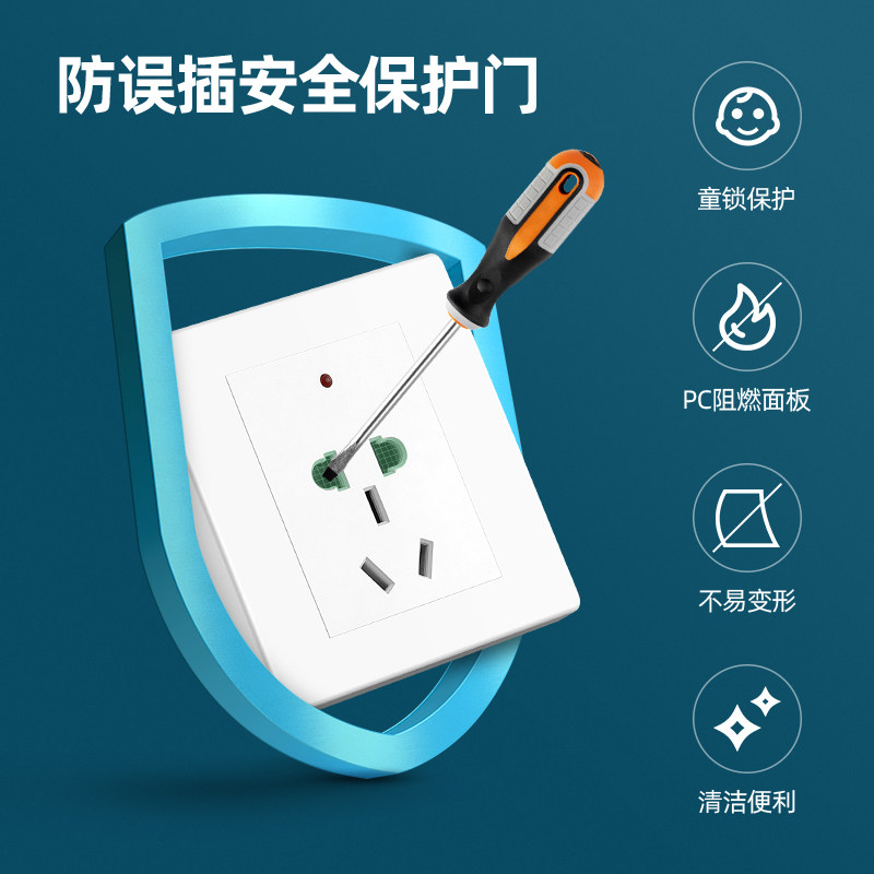 📚 86型暗装五孔插座带灯二三插带指示灯充电桩专用插座五眼插座面板