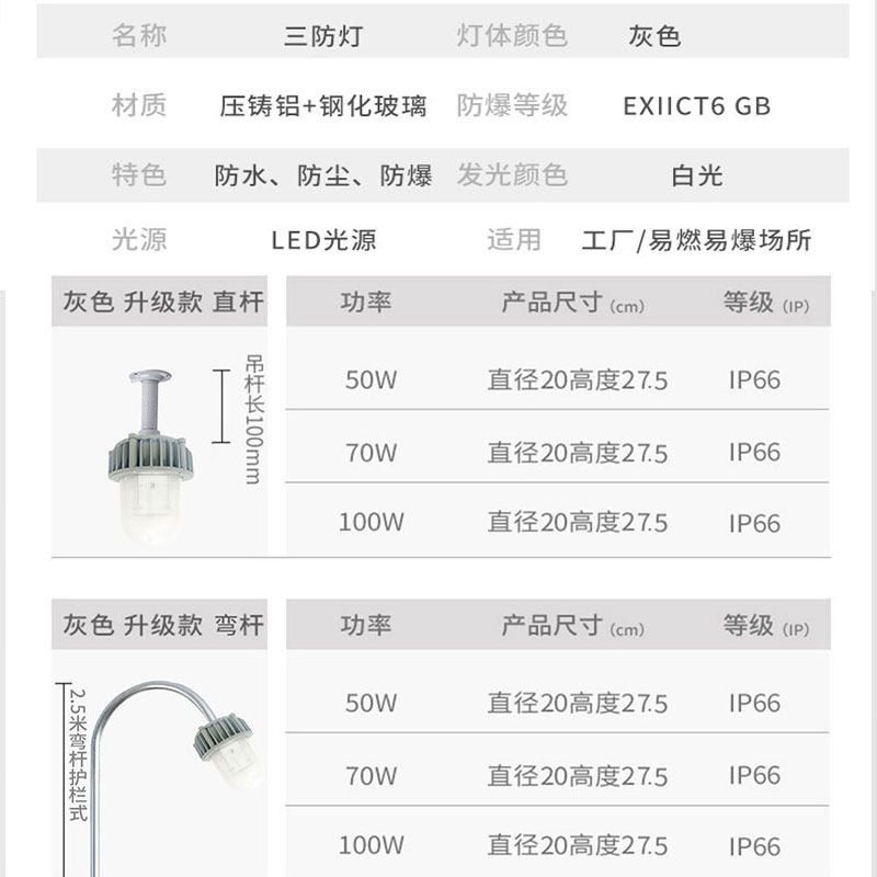 📚 防爆led灯三防平台灯2.5米立杆护栏工厂车间化工电厂围栏防水照明