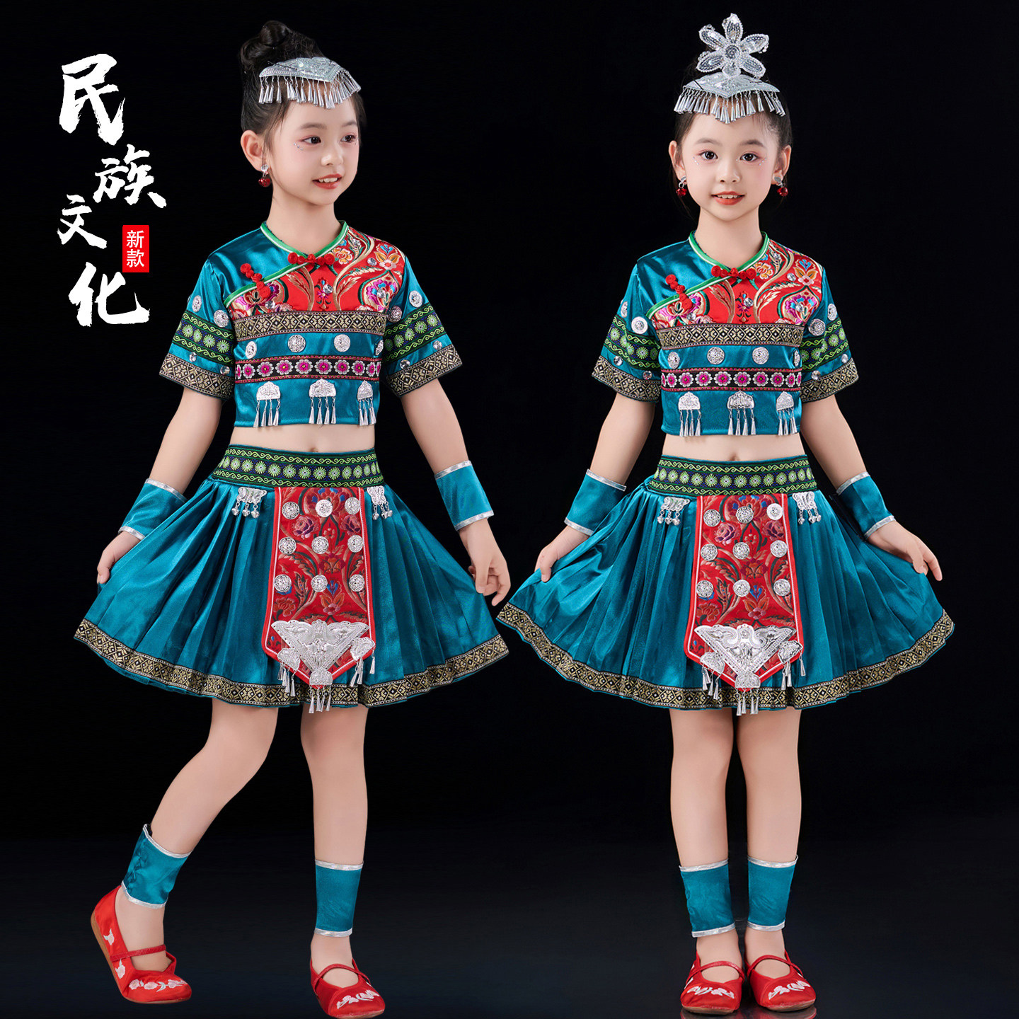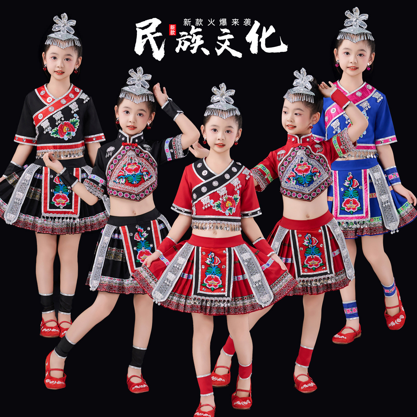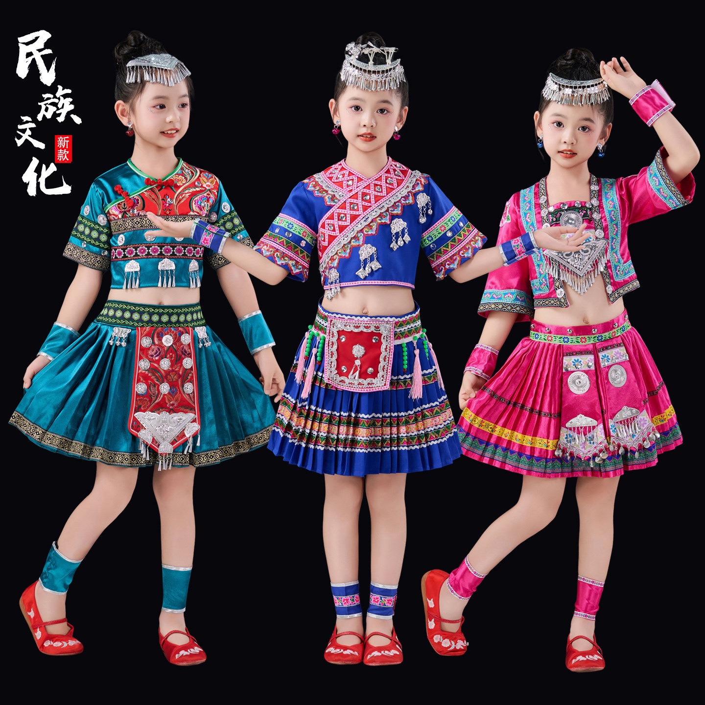 📚 2025新款儿童苗娃娃舞蹈演出服装少数民族彝族蓬蓬纱裙土家族服