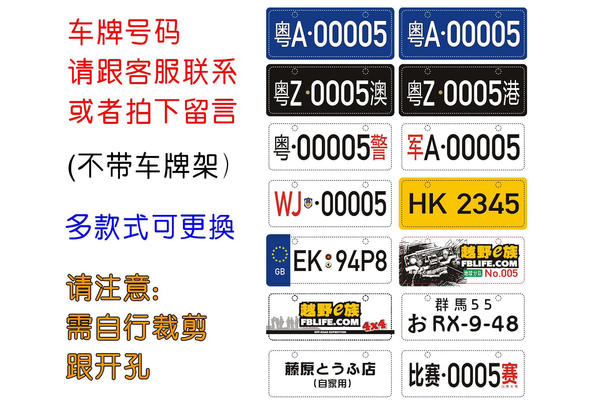 📚 RC仿真定制 1/10 攀爬车牌 cc01/SCX10/TRX4 平跑模型车牌 车牌架