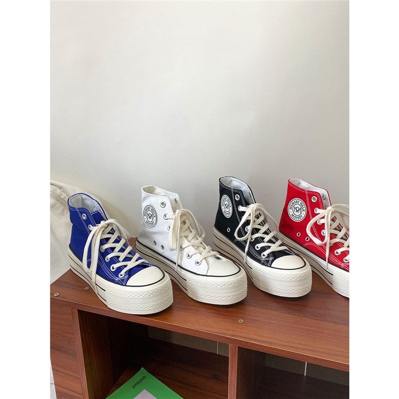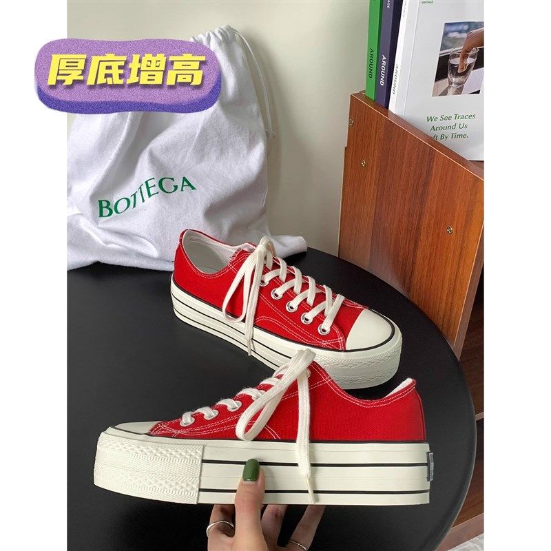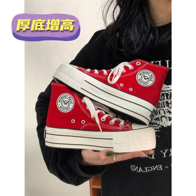 📚 小瑜家 2024夏季新款红色女鞋1970s超火高帮帆布鞋女厚底鞋子板鞋