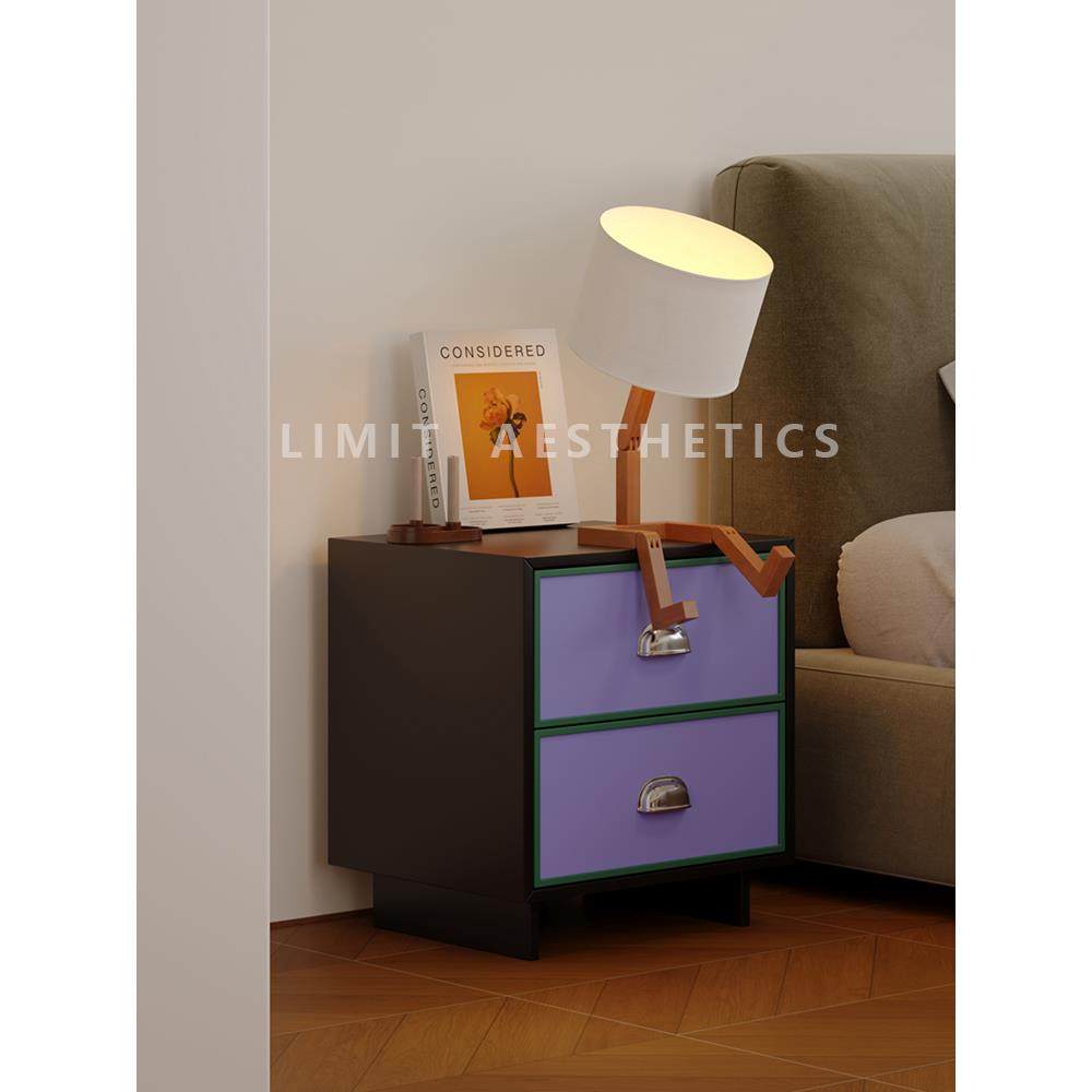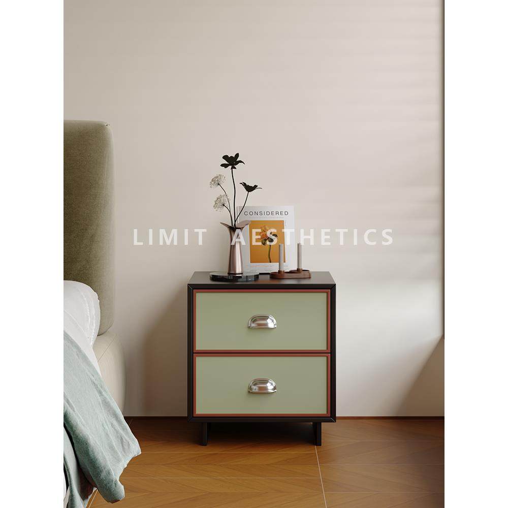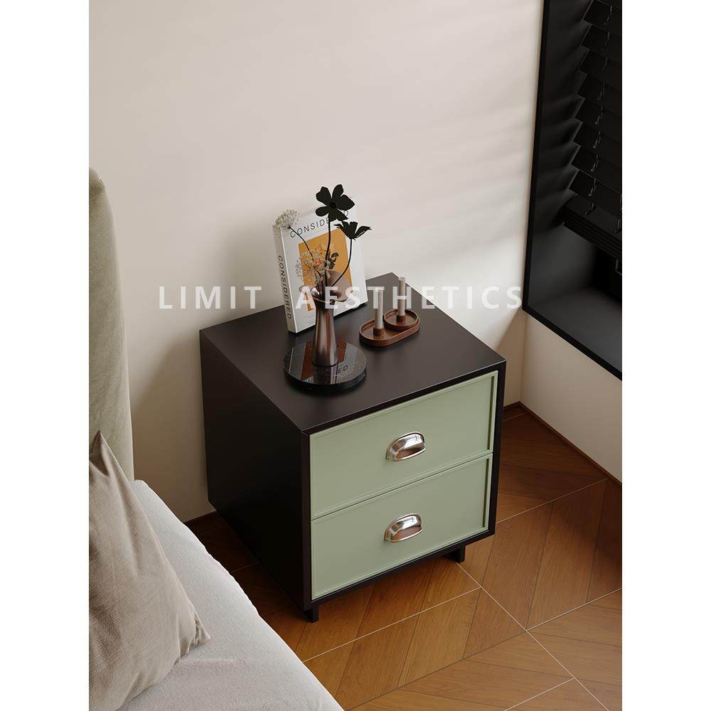 📚 LIM界限中古风床头柜覆古双层床边柜拼色撞色储物小柜子烤漆定制Z