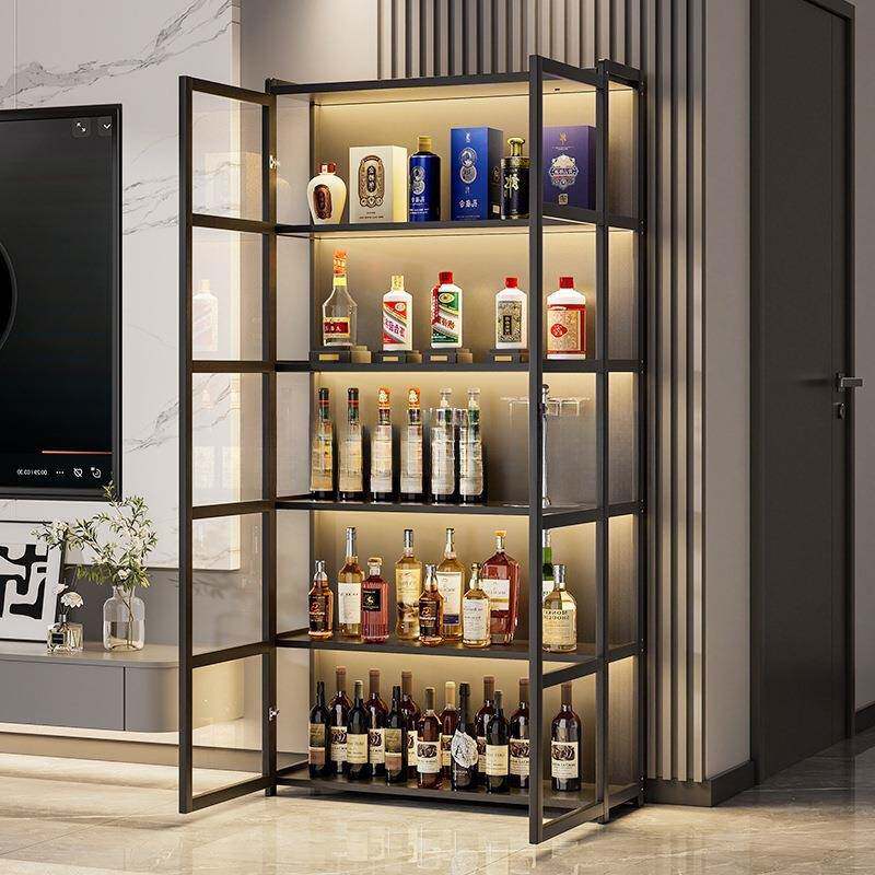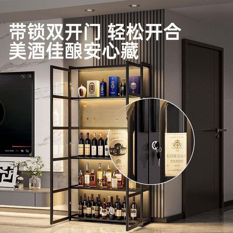 📚 吉妃翔带锁酒柜一体柜靠墙储物柜自带灯条家用客厅红酒展示柜隔层
