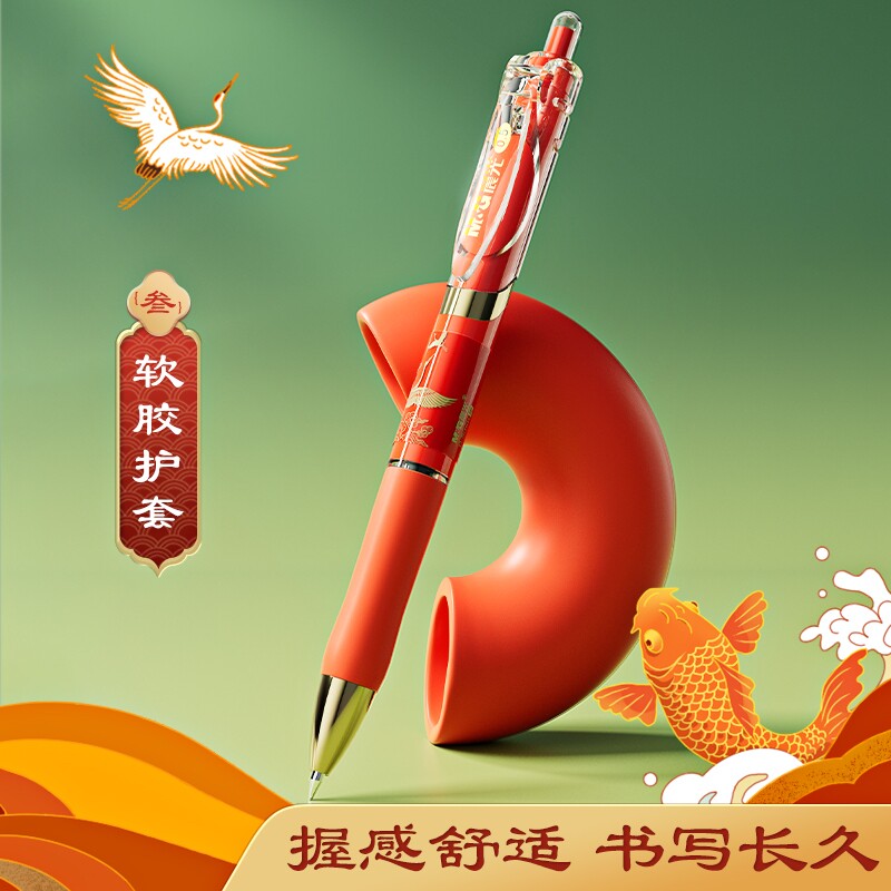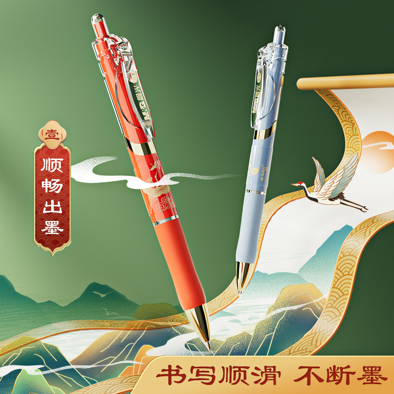 📚 晨光故宫瑞兽文化联名金榜题名礼盒套装K35按动中性笔0.5子弹头碳素笔学生用黑色水笔高颜值按压式圆珠笔