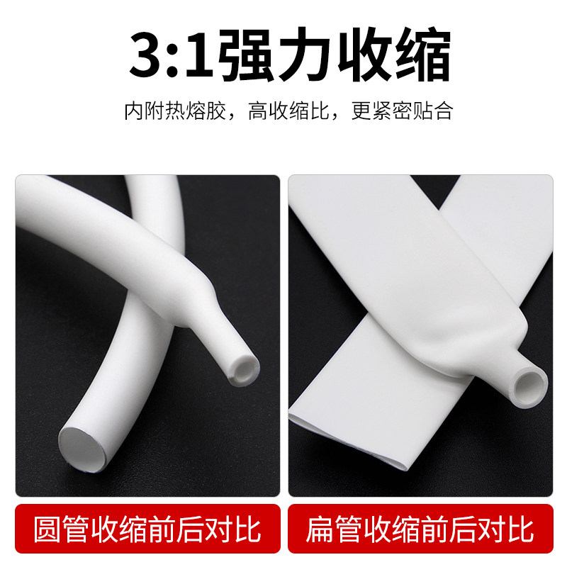 📚 三倍热缩管加厚带胶双壁管3倍绝缘电线热缩套管电工防护套管白色