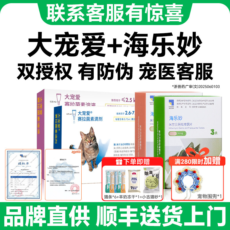 📚 大宠爱猫咪驱虫药猫体内外一体海乐妙驱虫药成幼猫驱耳螨跳蚤套餐