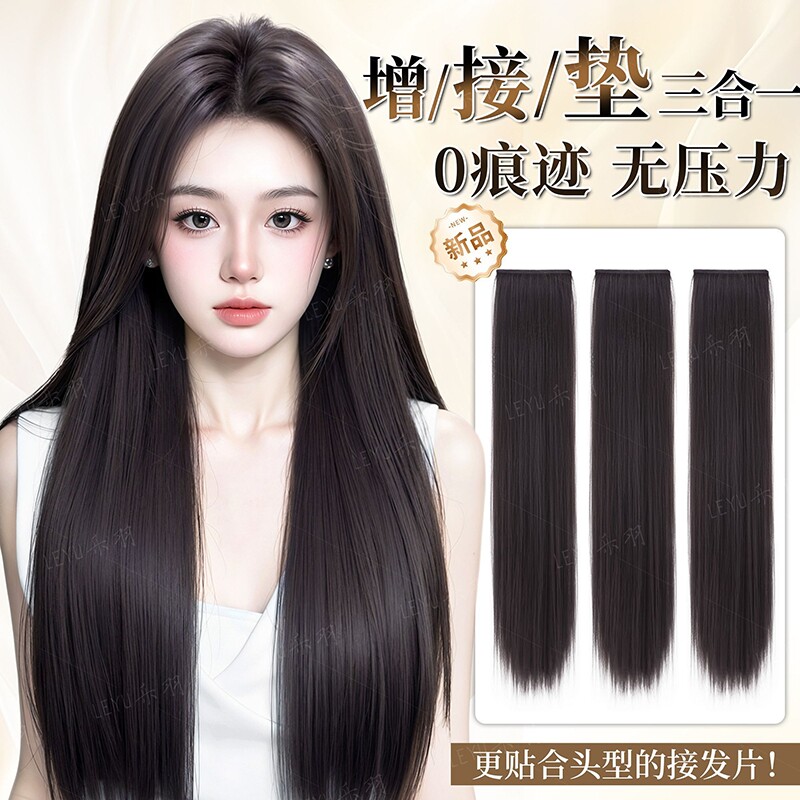 📚 【增接垫三合一】假发片女三片式仿真隐形无痕手织包边直发接发片