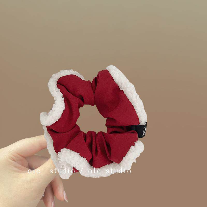 📚 卷卷娇红~新款安克拉红毛绒发圈!交叉发夹甜美鲨鱼夹百搭发饰女