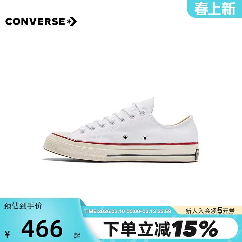 📚 Converse匡威男女鞋1970S经典帆布低帮休闲运动鞋白色162065C