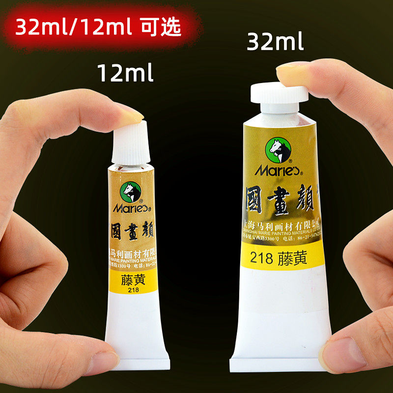📚 马利牌中国画颜料大管32ml马丽玛丽藤黄色花青12色24色初学者套装