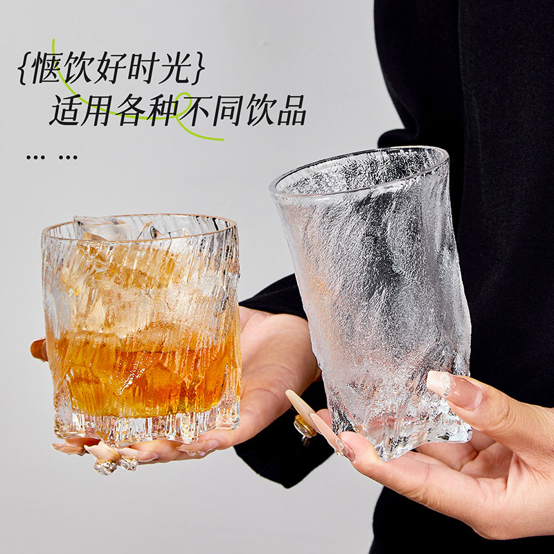 📚 冰川杯喝酒杯子家用女士高颜值玻璃杯高级感轻奢特别好看的喝水杯