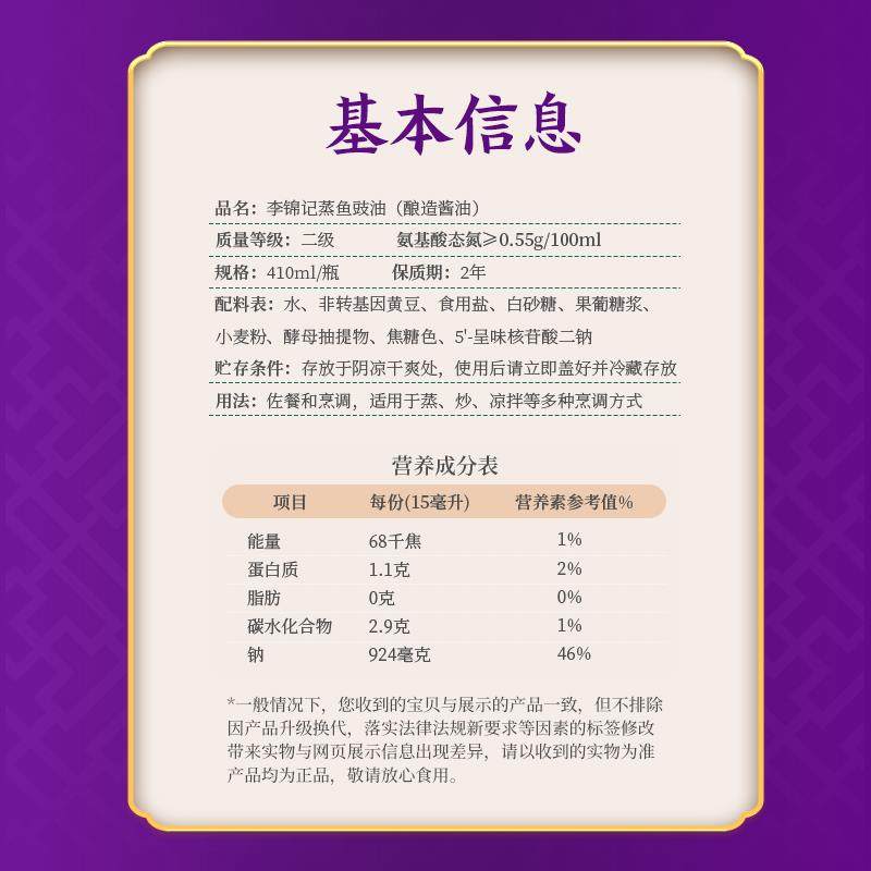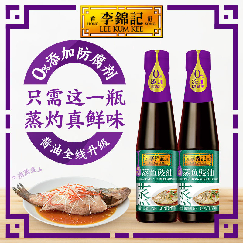 📚 【多sku】李锦记蒸鱼豉油0添加生抽家用酱油白灼汁410ml*2瓶官方