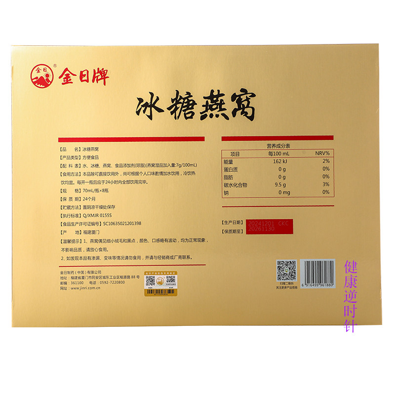 📚 金日牌冰糖燕窝饮品70ml*8瓶即食燕窝饮品礼盒装节日送礼超市同款