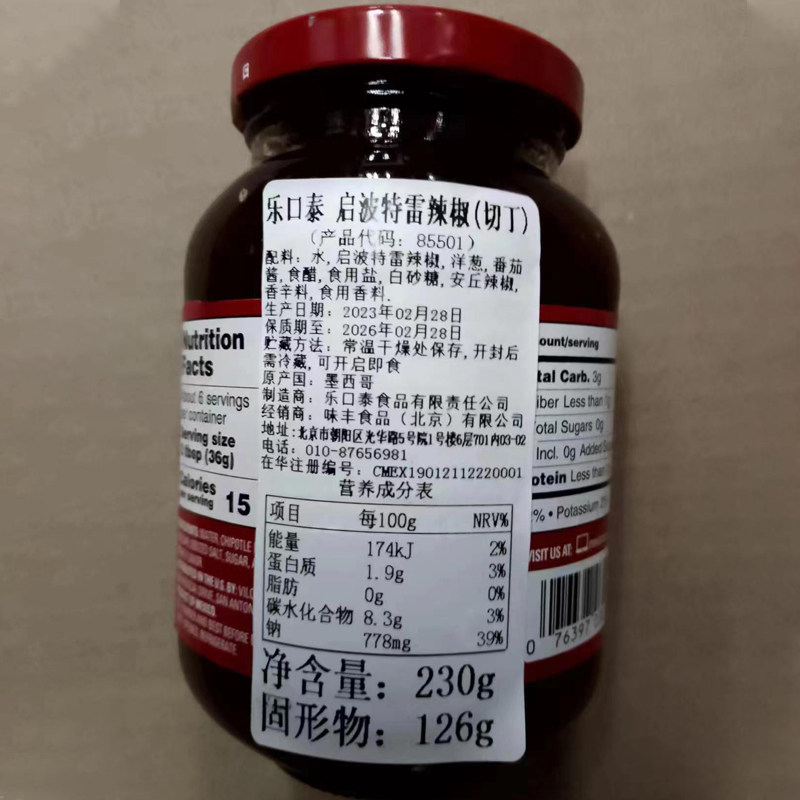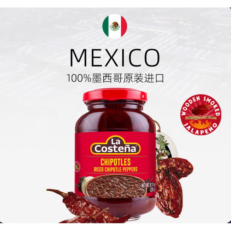 📚 墨西哥进口乐口泰启波特雷辣椒切丁230g辣椒酱烟熏烧烤蘸酱烤肉酱