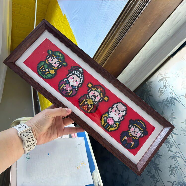 📚 福禄寿喜财拼豆相框空白展示框五福临门拼豆相框玄关入户门摆件