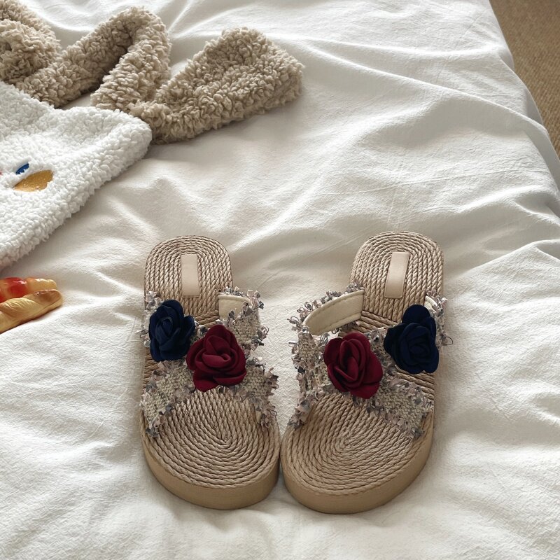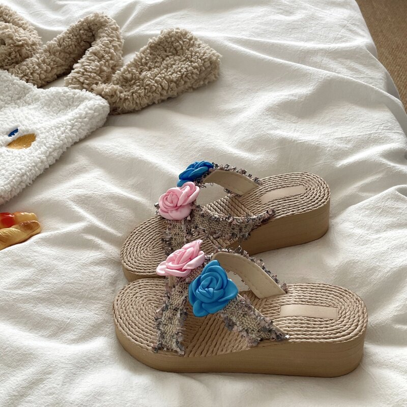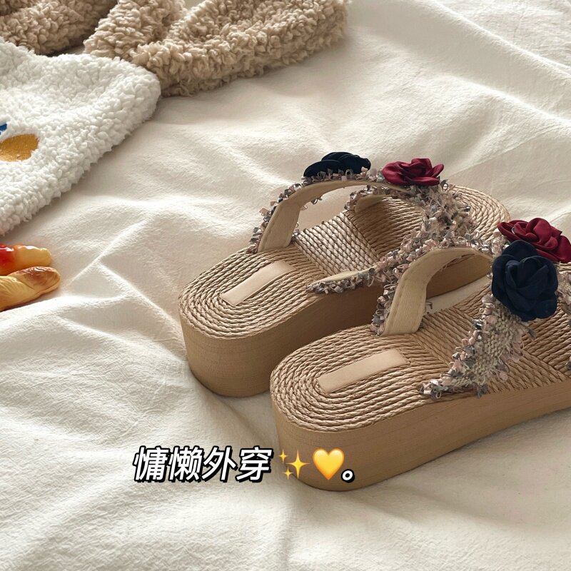 📚 海岛玫瑰~!草编温柔ins外穿拖鞋女夏季透气度假风慵懒厚底拖鞋潮