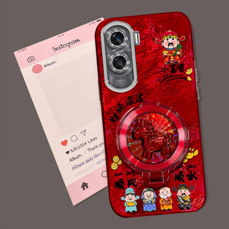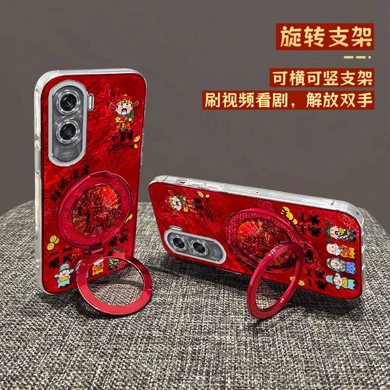 📚 适用荣耀x50i手机壳CRT-AN00带镜头膜华为honor90lite喜庆crt—anoo保护套x50l新年女款5g全包边防摔手链支架