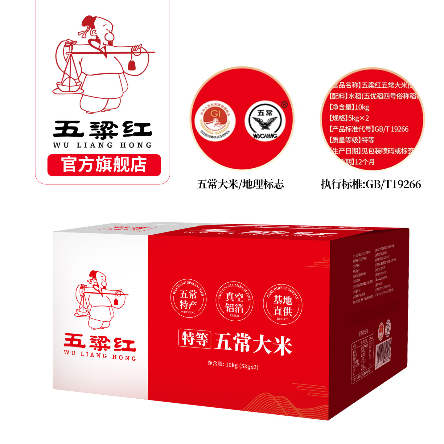 📚 五梁红特等五常大米20斤当季新大米原粮稻花香2号放心米10kg箱装