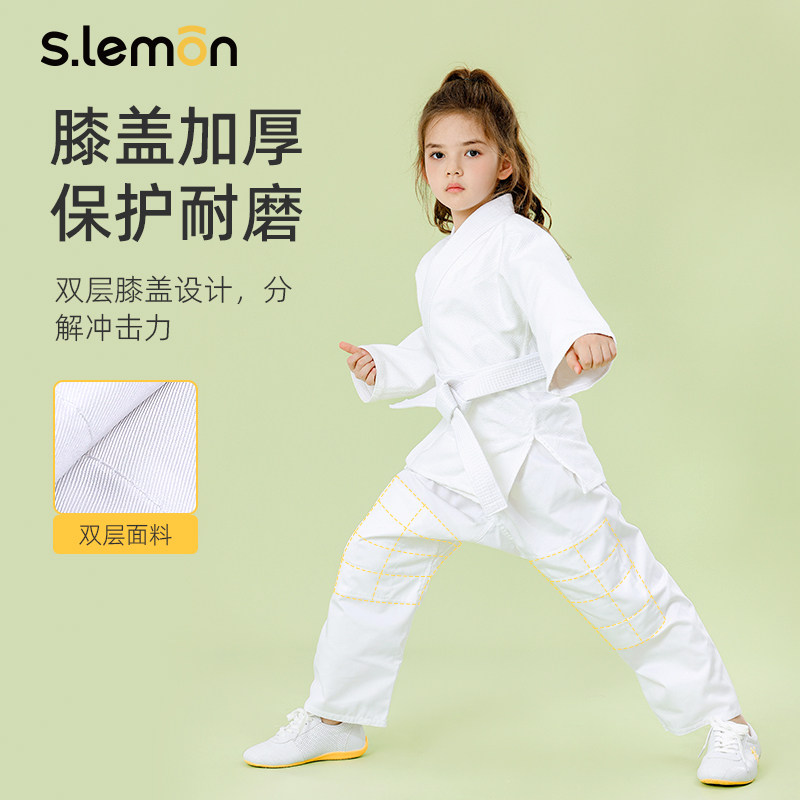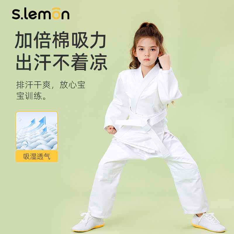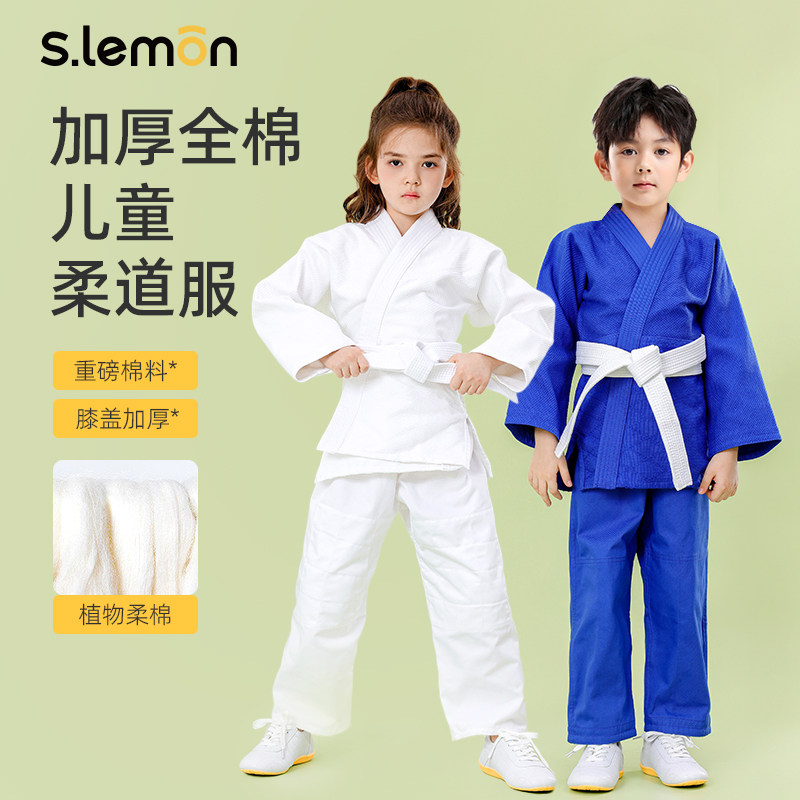 📚 儿童柔道服男女加厚全棉长袖蓝白色专业训练服比赛表演柔术服套装