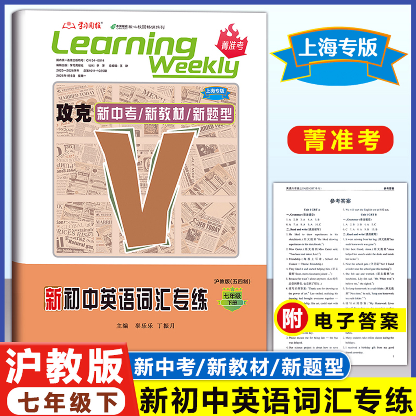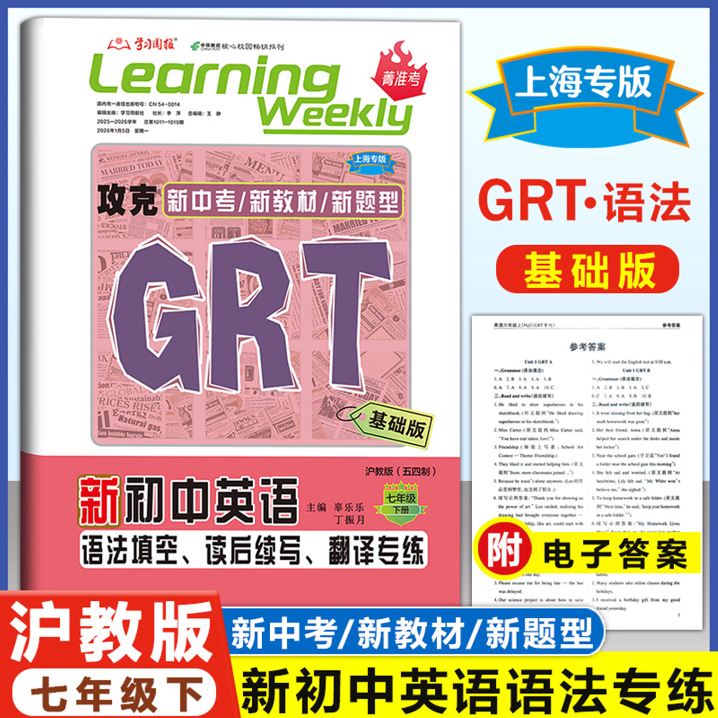 📚 2026上海新初中英语 七年级 GRT语法+LVS听力+词汇 基础版/增强版/沪教版7年级上下册名师名卷新中考新教材新题型沪教版学习周报