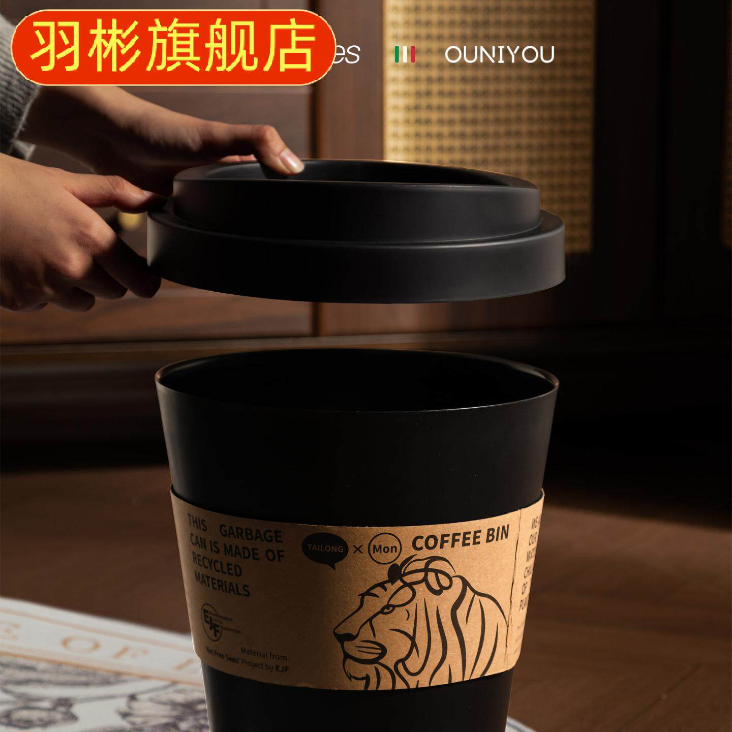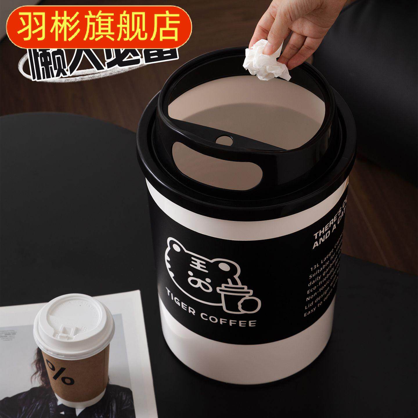📚 创意垃圾桶咖啡杯造型家用垃圾筒客厅卧室办公室高颜值带盖纸篓子
