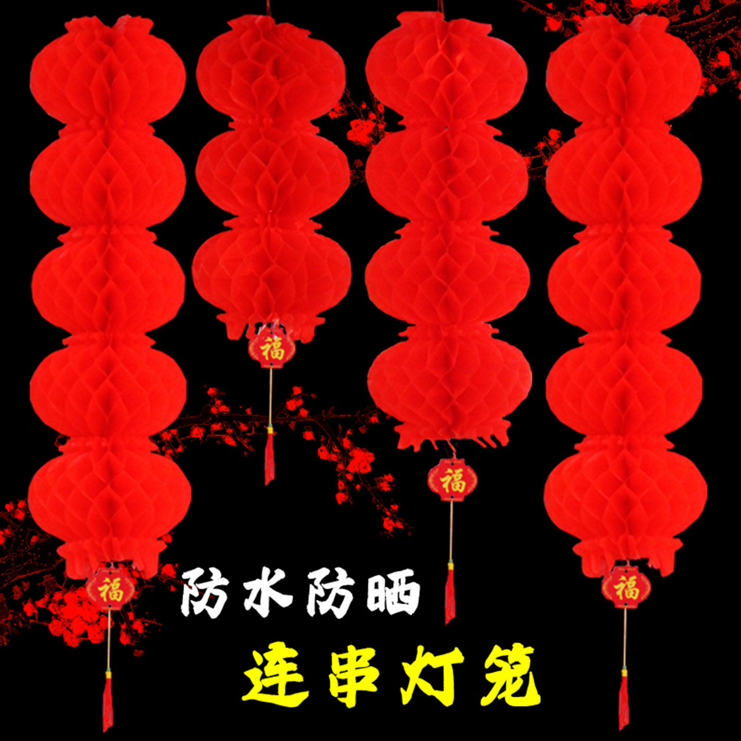 📚 新年元旦小红连串纸灯笼户外防水春节装饰塑料纸户外纸灯笼串挂饰