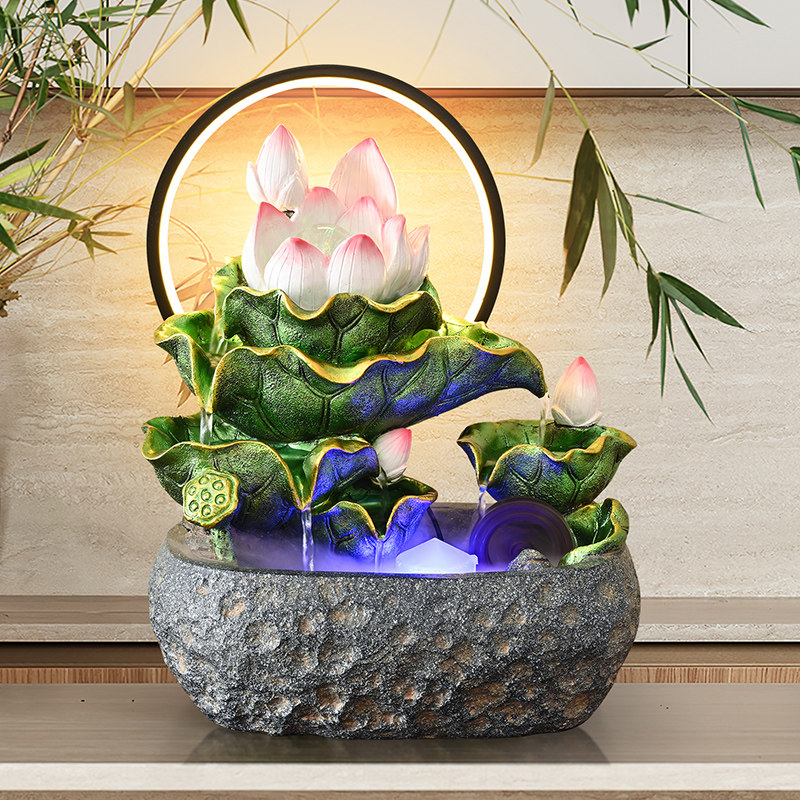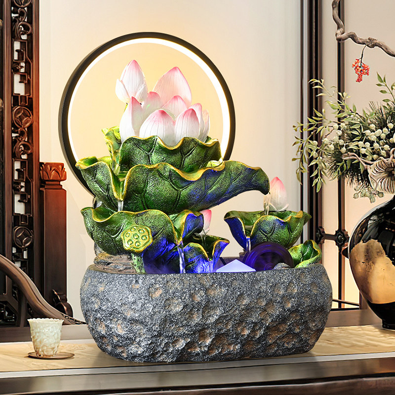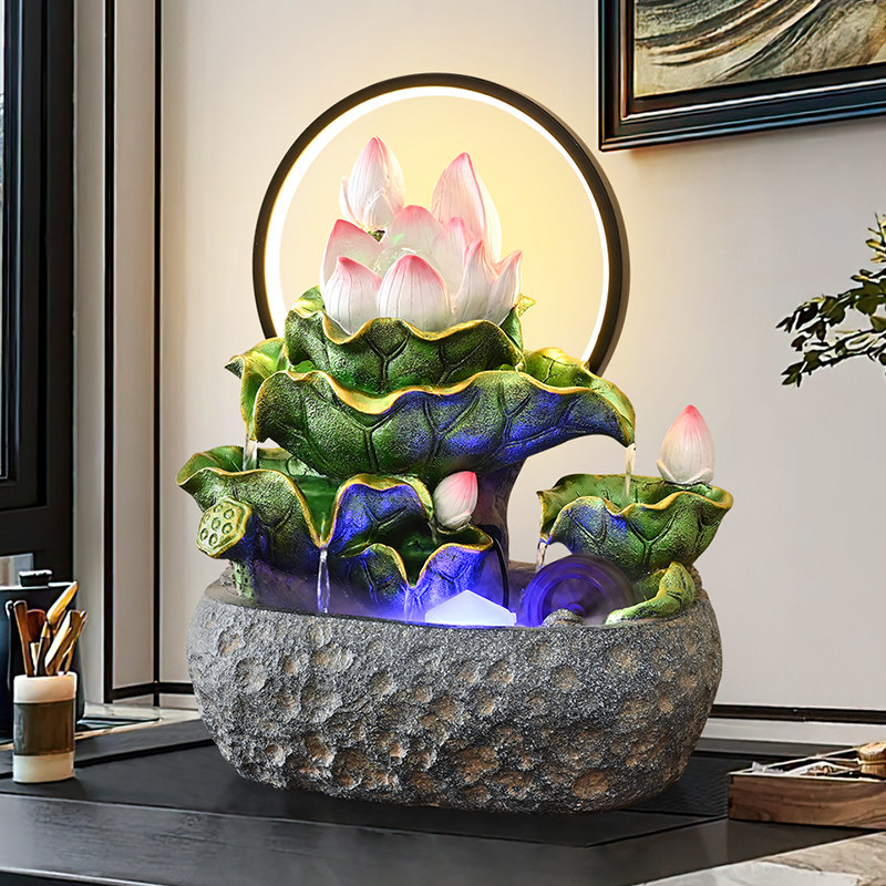 📚 流水生财荷韵循环水景喷泉客厅玄关办公室高端招财风水轮开业乔迁