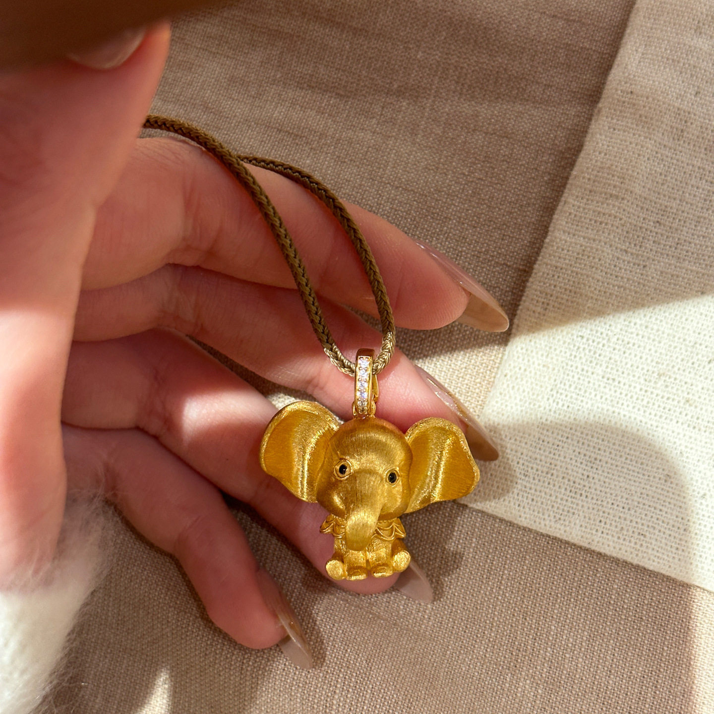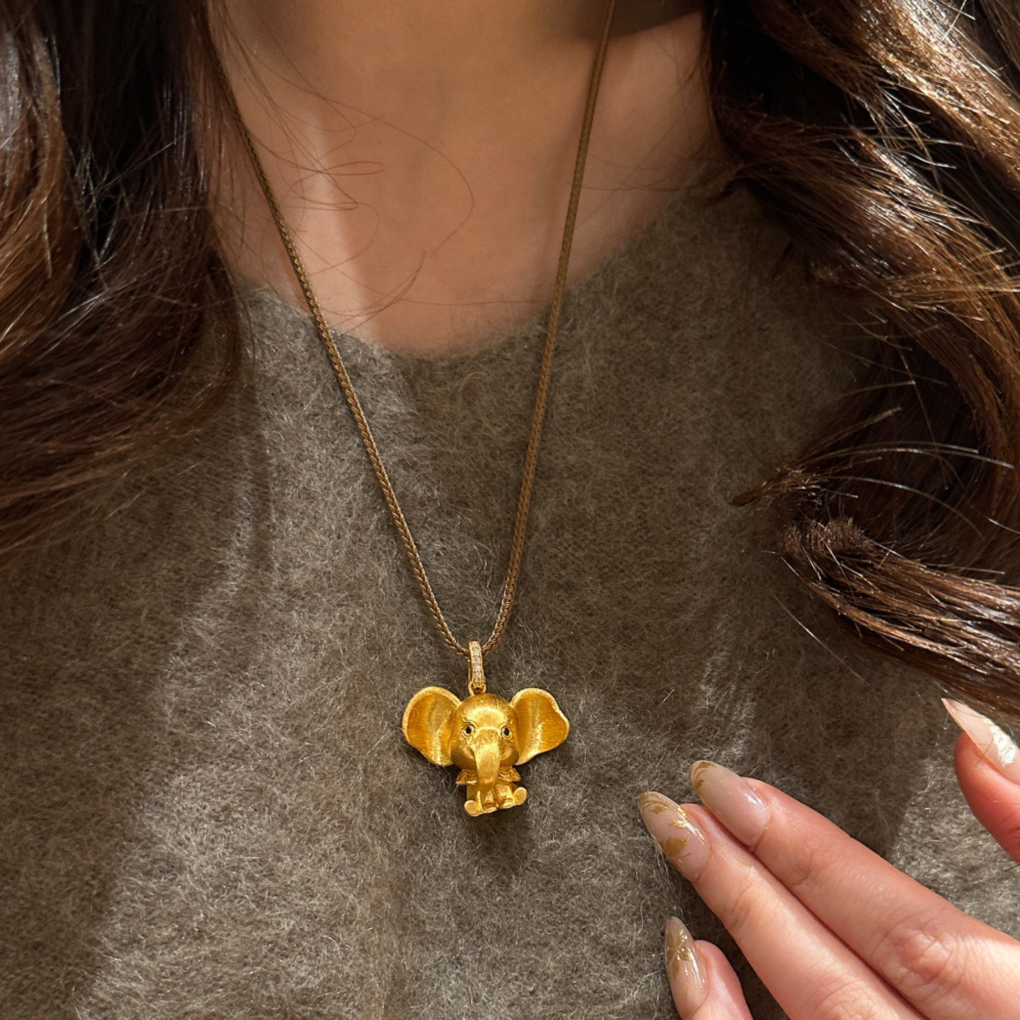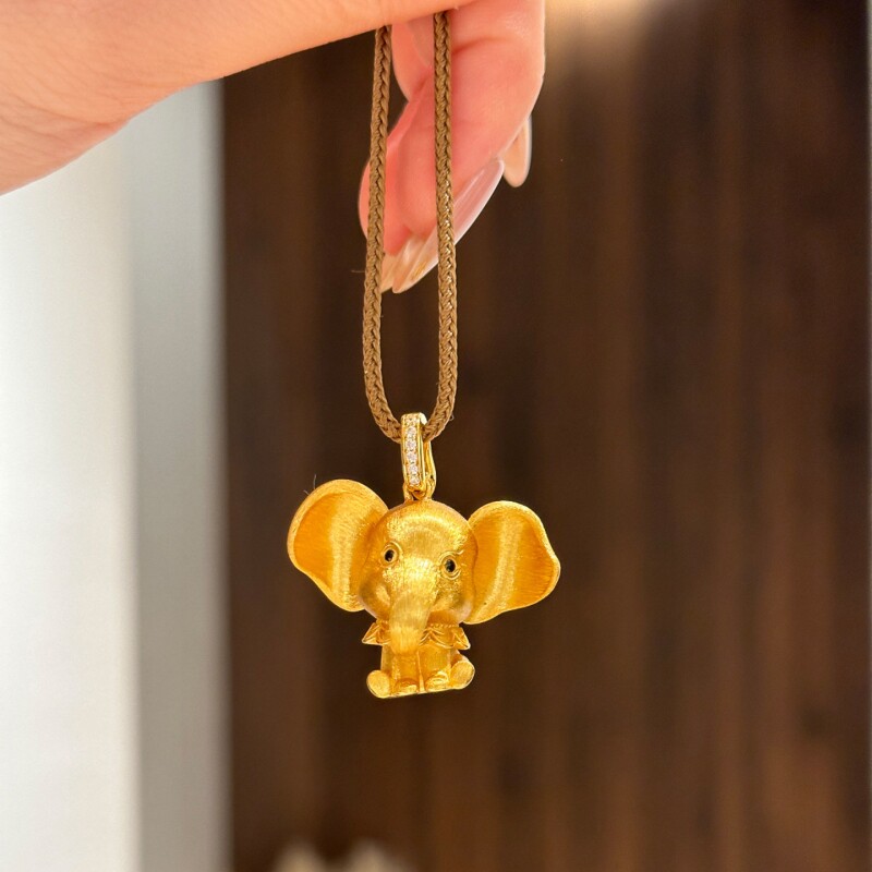 📚 围兜小飞象拉丝小象吊坠项链轻奢高级感复古时尚毛衣链