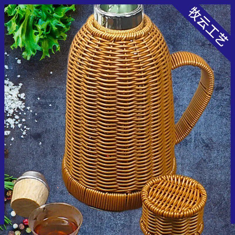 📚 仿藤手工编织复用保温罩带w茶室大容量暖壶内胆开热水玻璃瓶