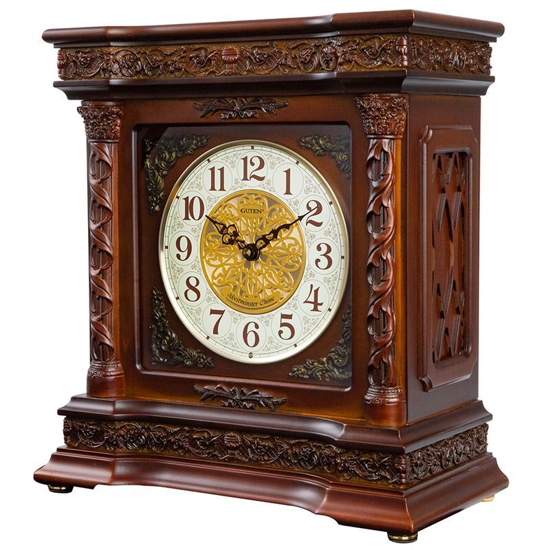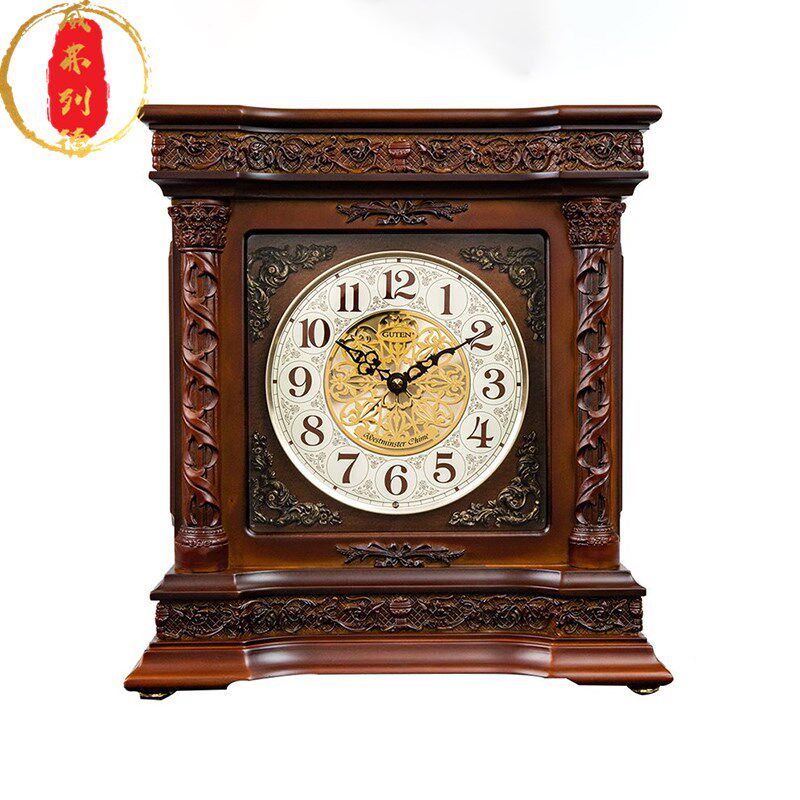 📚 威弗列德中式立体浮雕石英钟表整点报时钟实木钟客厅欧式静音台钟