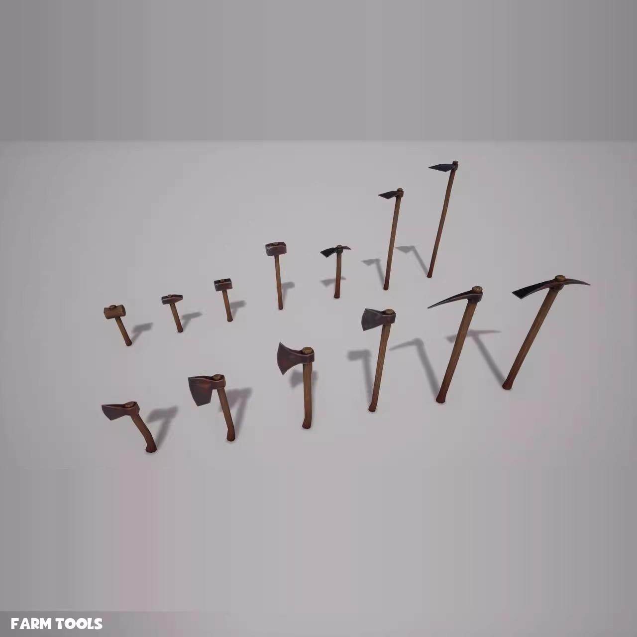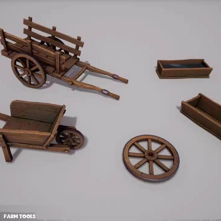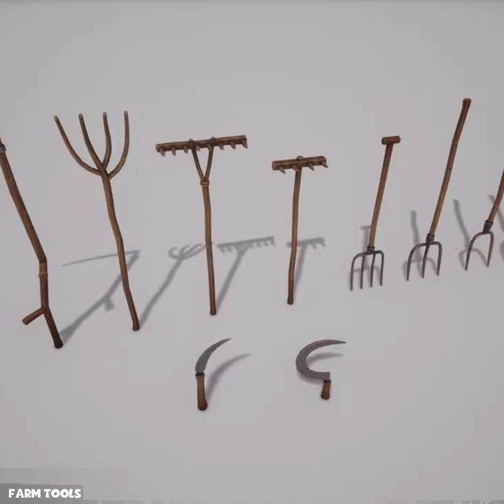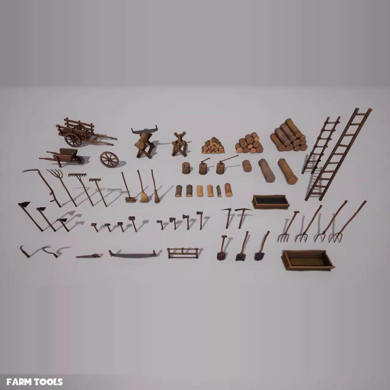 📚 UE4虚幻5农场农具推车梯子锄头木叉木头木材斧头农用道具模型素材