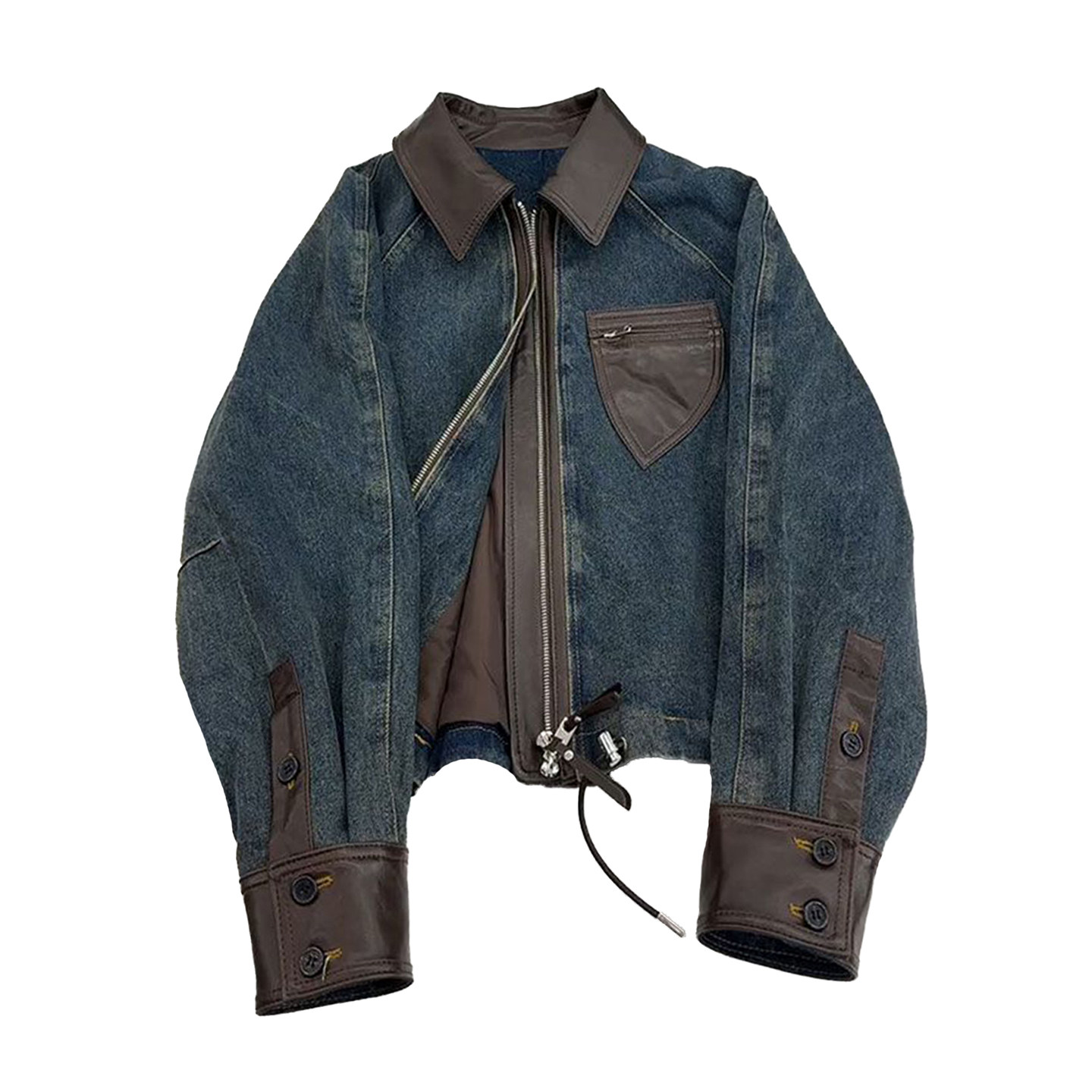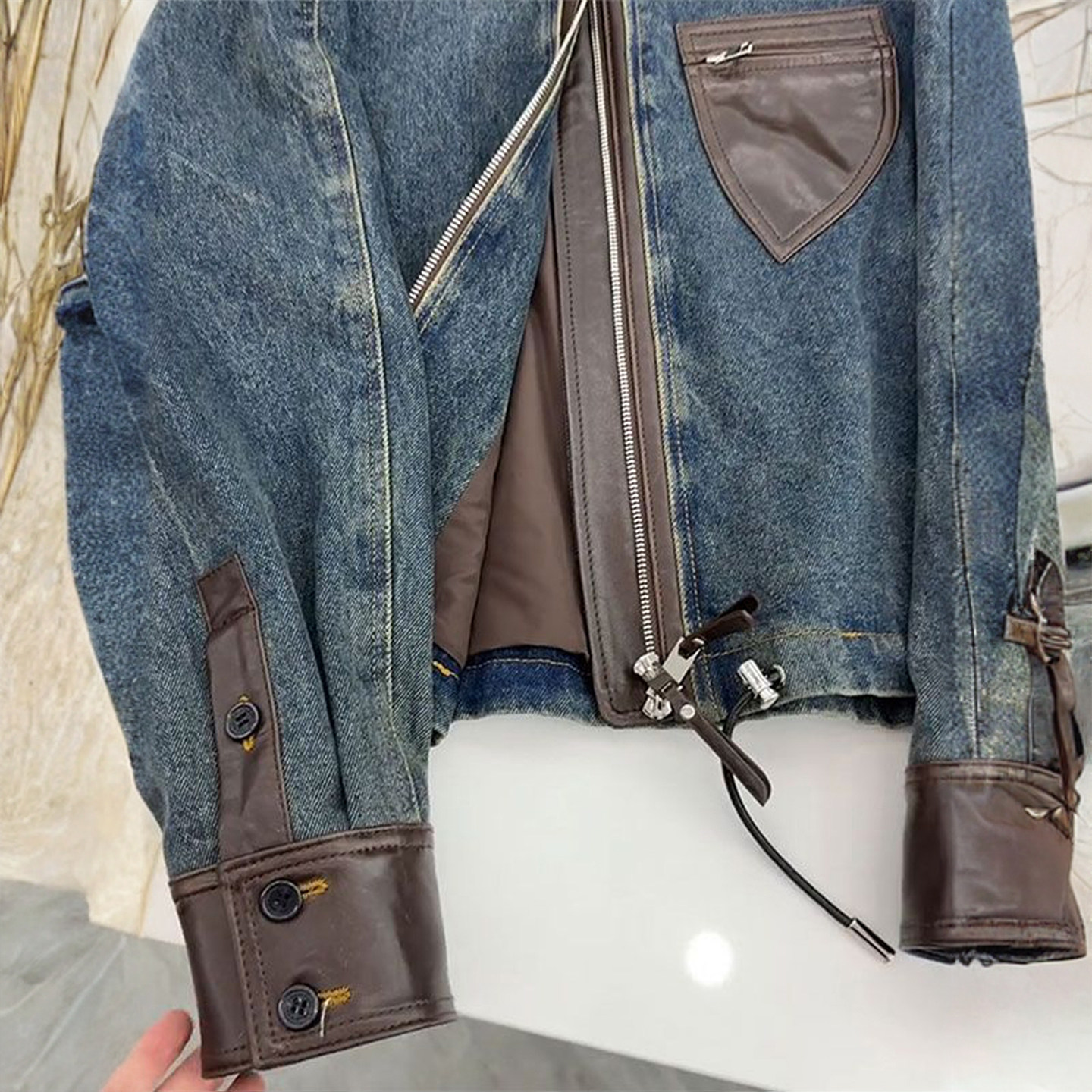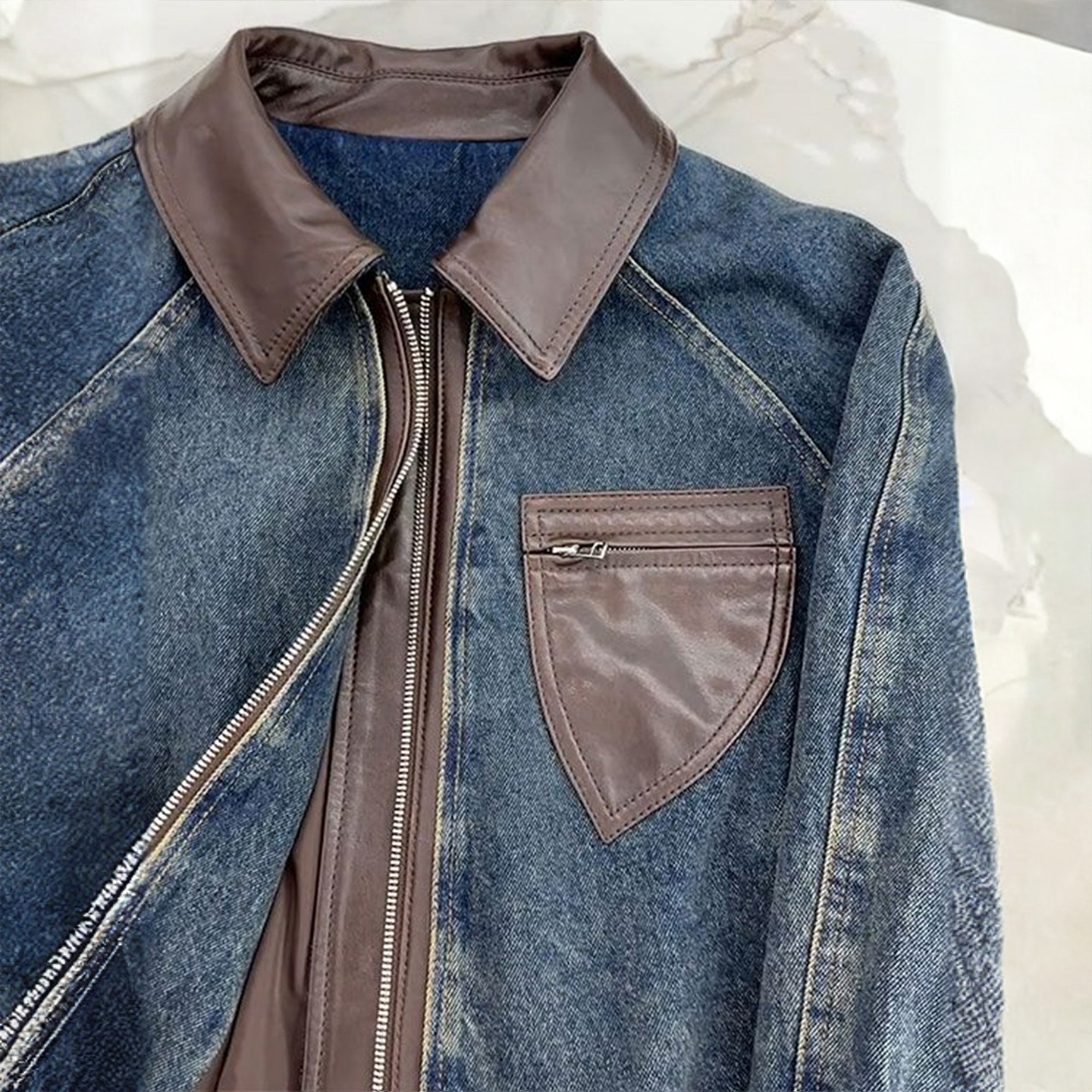📚 300斤大码美式拼接设计牛仔外套女胖mm蓝色宽松遮肉显瘦开衫皮衣