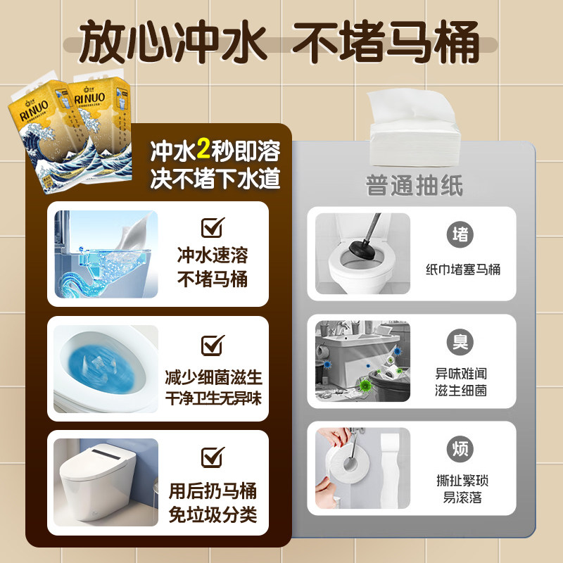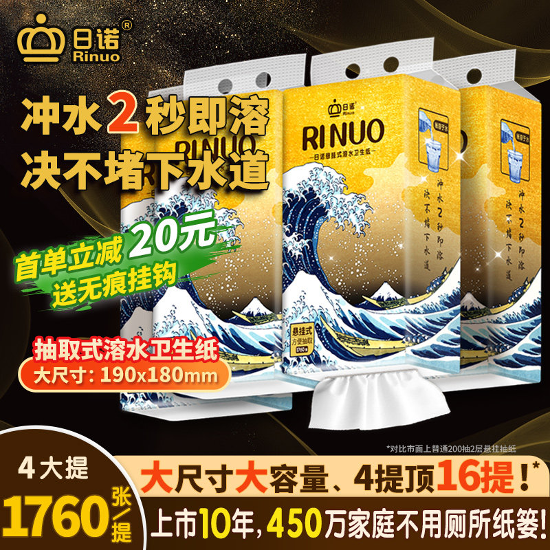 📚 日诺悬挂式抽纸水溶卫生纸速溶纸巾家用实惠装整箱抽取式厕纸4提