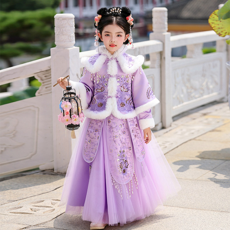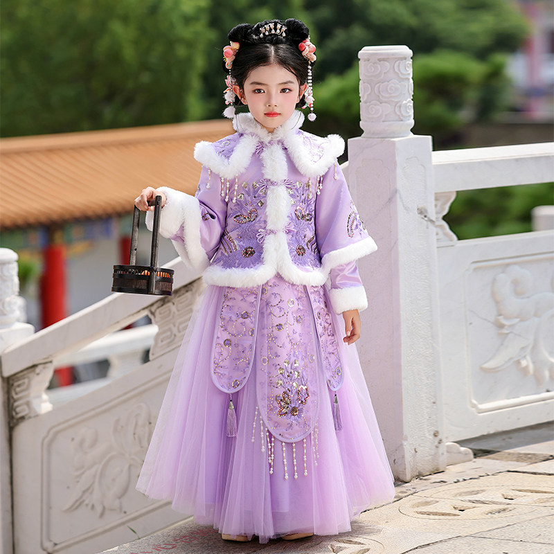 📚 女童汉服秋冬2026新款儿童古装冬季中国风加绒女孩唐装古风连衣裙