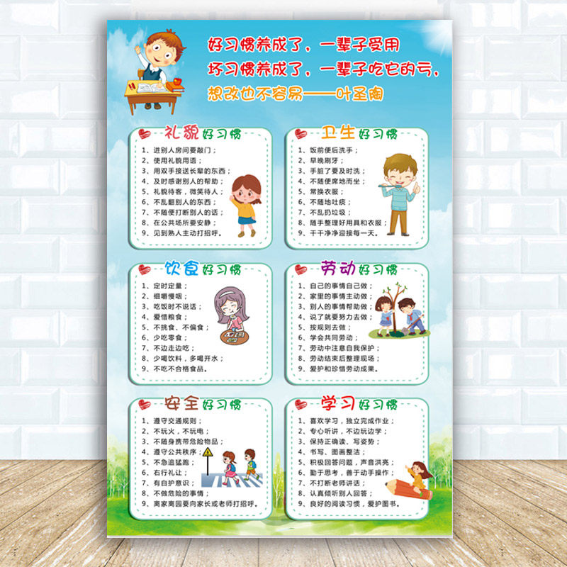 📚 儿童成长公约家规家训墙贴好孩子习惯规矩男孩家庭女孩好父母定制