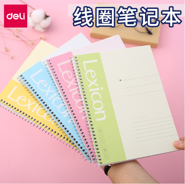 📚 6本 线圈笔记本得力7684笔录本6本装 A5空白本软面抄记事本子80页