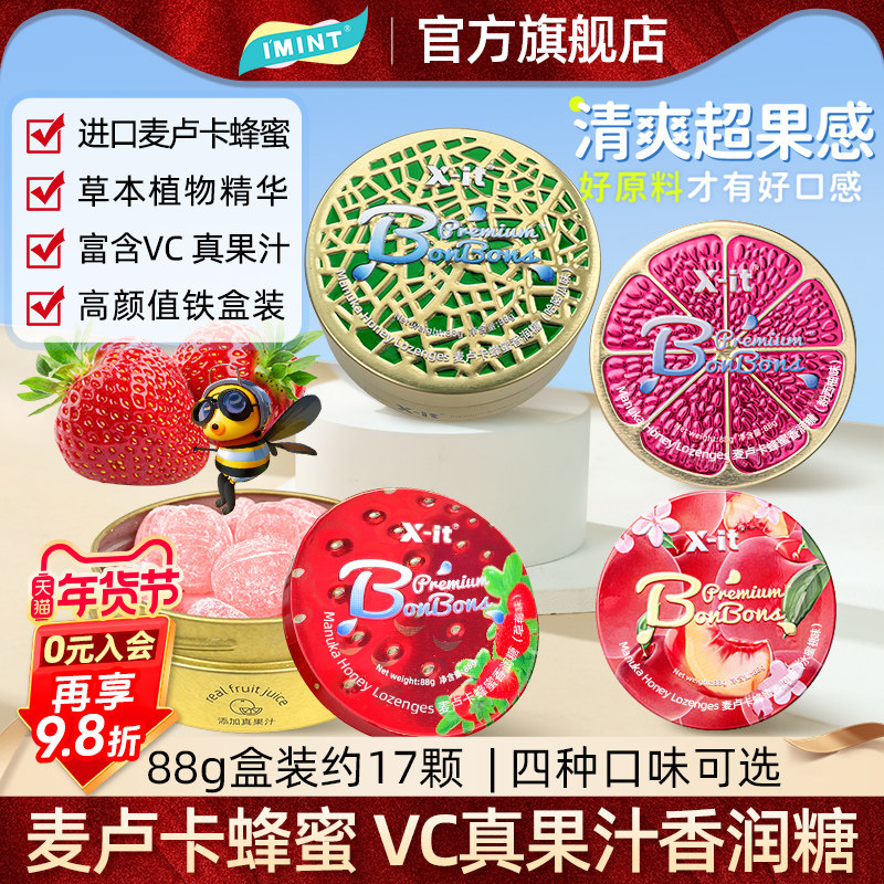 📚 imint水果汁香润糖麦卢卡蜂蜜VC清新口气xit薄荷润喉草本硬糖果Z