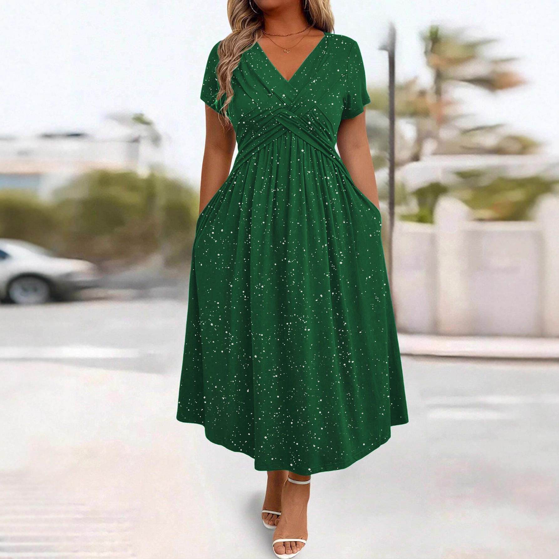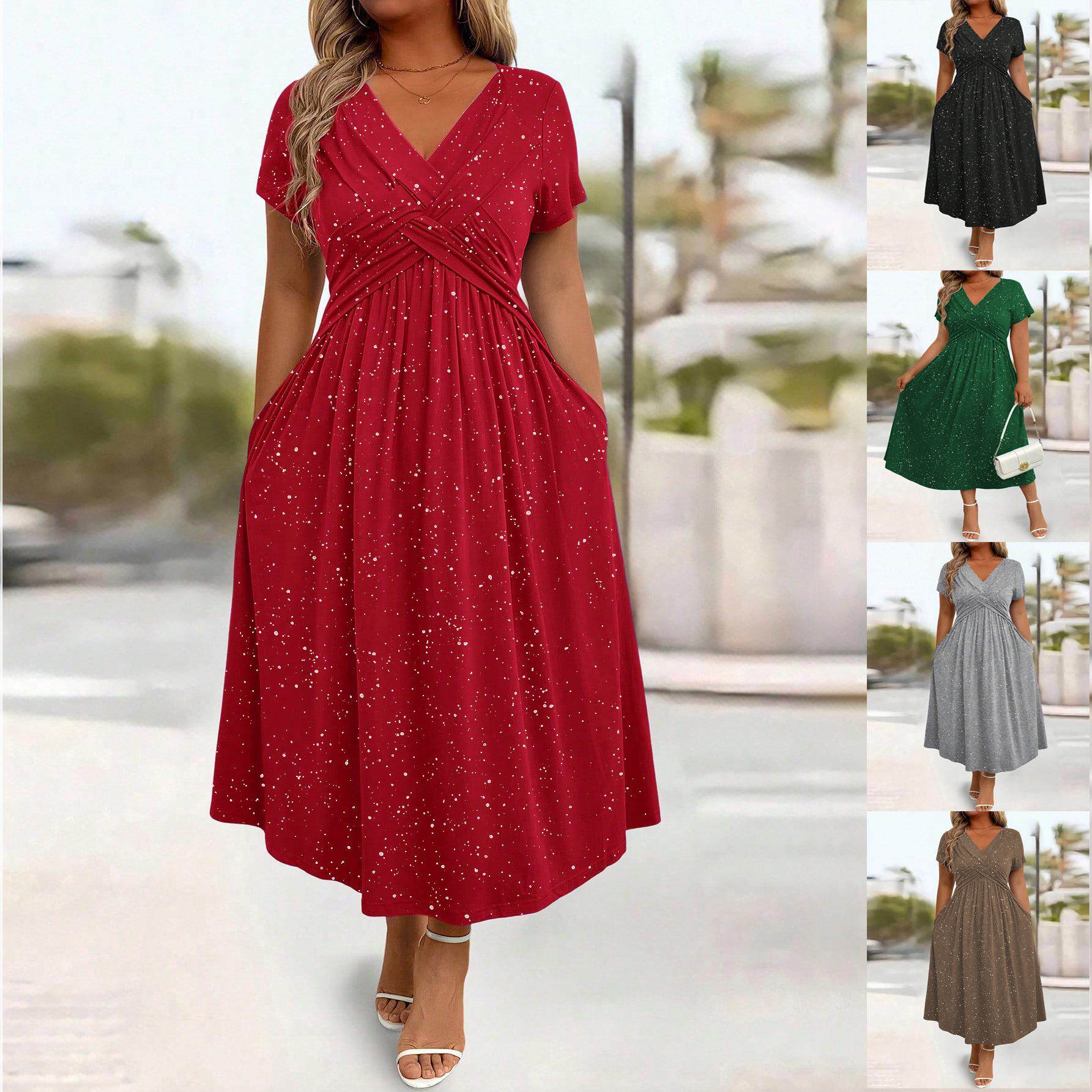 📚 Waist cinched, shiny, powder sprinkled, pocket V-neck