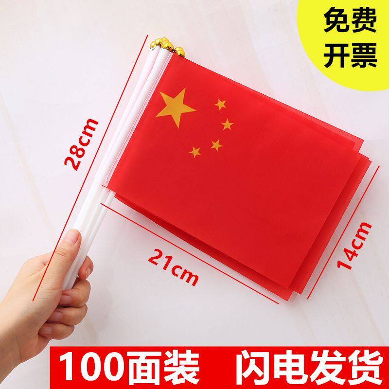 📚 中国国旗五星红旗手摇旗小党旗带杆小国旗小红旗7号8号国旗串