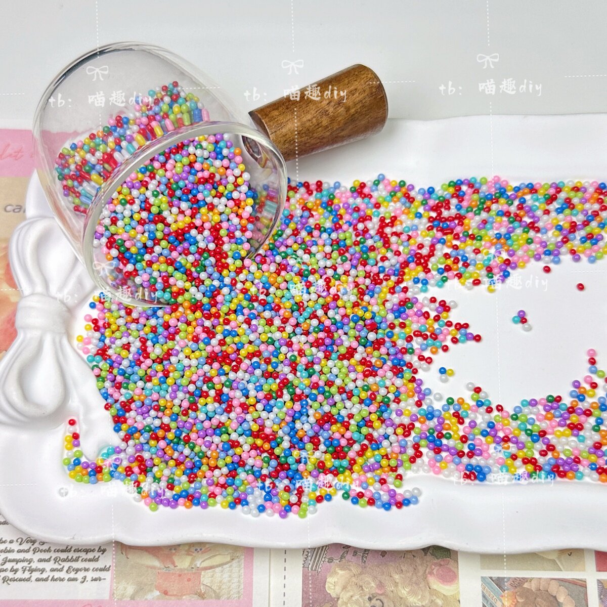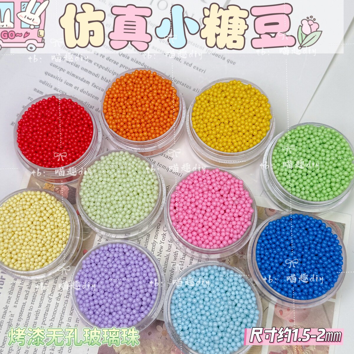 📚 2mm无孔实色烤漆玻璃米珠手工diy饰品配件美甲史莱姆捏捏乐填充物