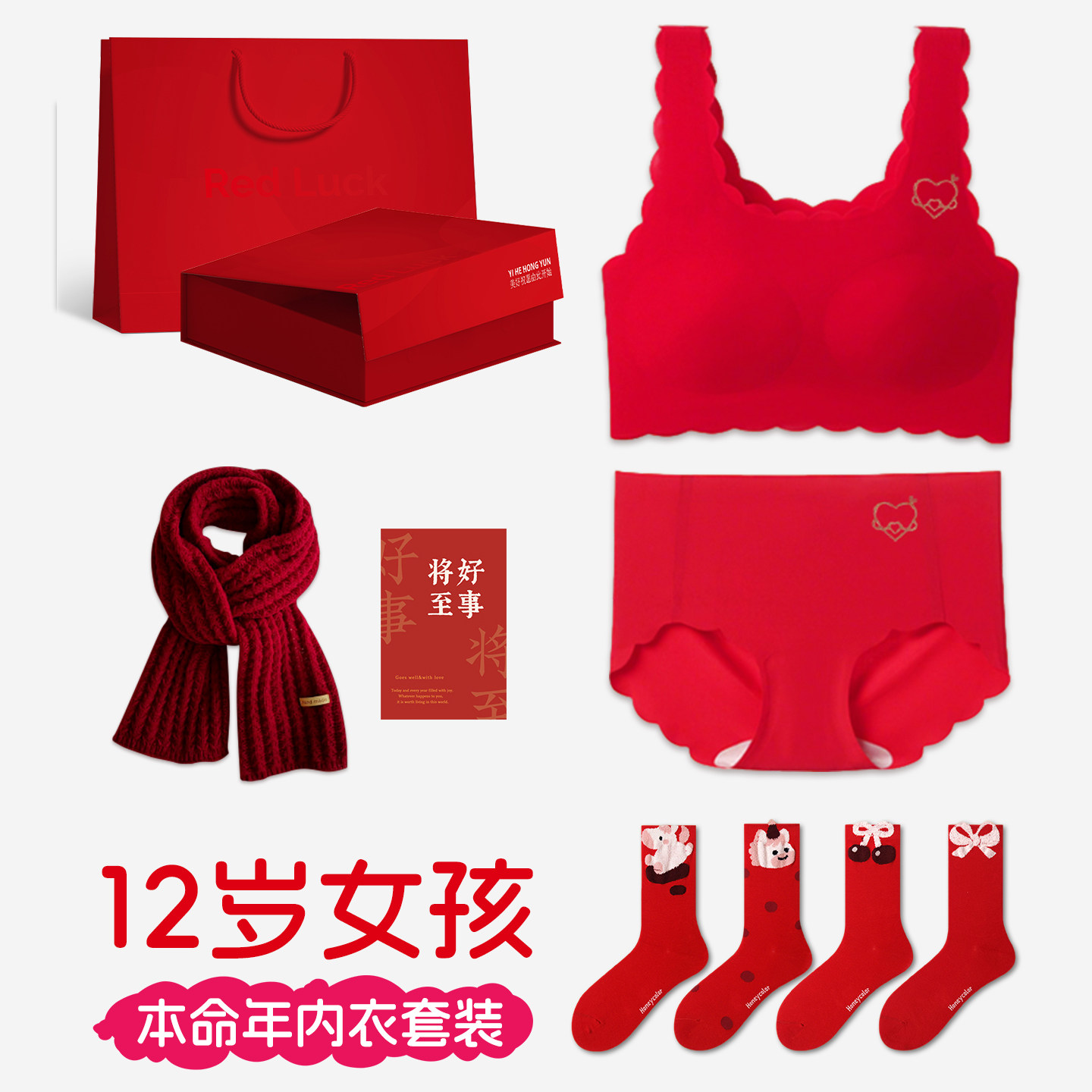 📚 女童本命年内衣套装红色文胸内裤少女孩12岁儿童属马的吉祥佩戴物