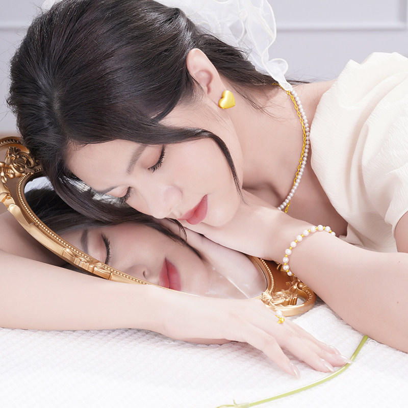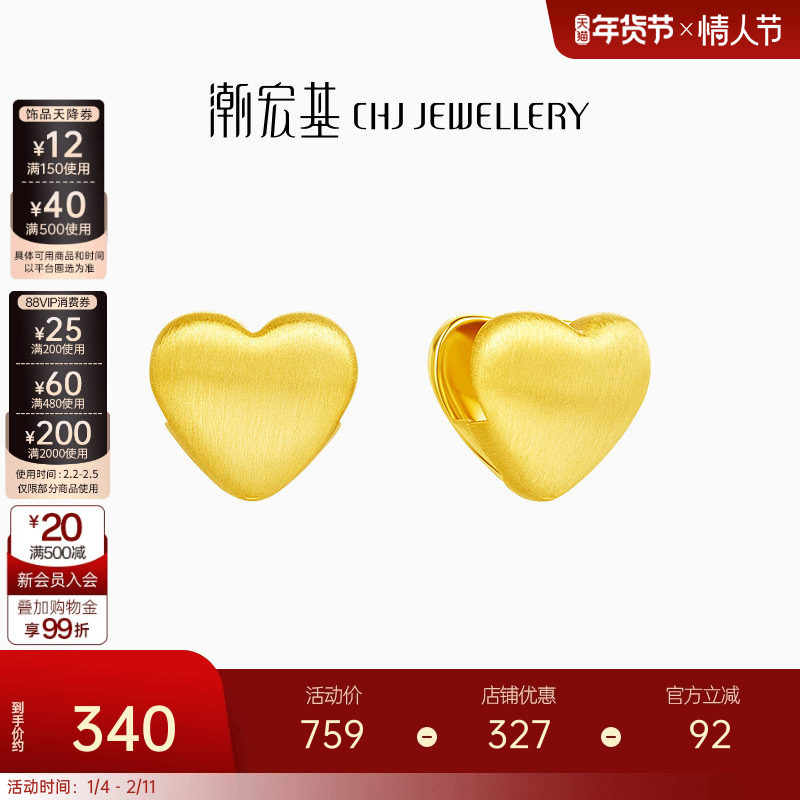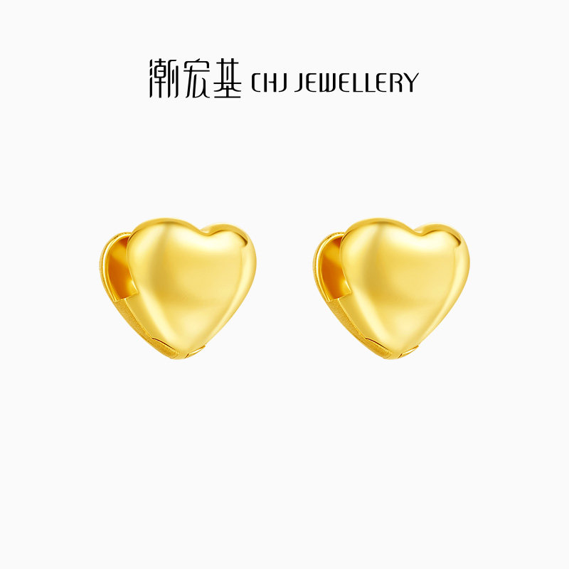📚 潮宏基至简心影S925银耳钉双面质感爱心甜美送女友情人节礼物