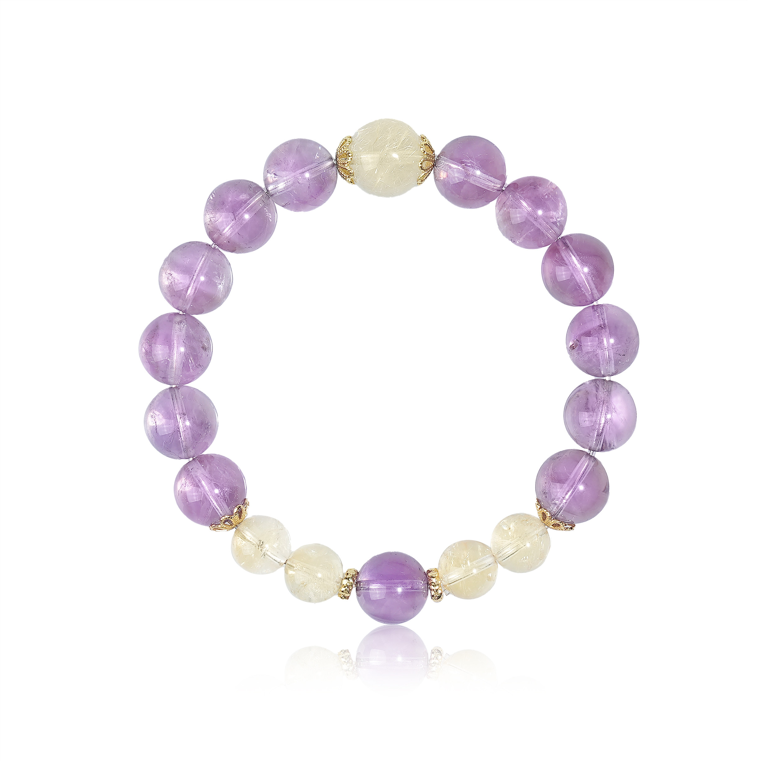 📚 与卿珠宝【逍遥游】天然紫水晶手串黄水晶+金发晶小众手链送礼物