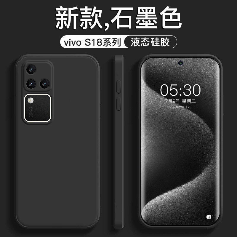 📚 适用于vivoS18手机壳新款液态硅胶vivoS18Pro全包防摔直边纯色保护套魔方男女商务远峰蓝情侣简约超薄软外壳