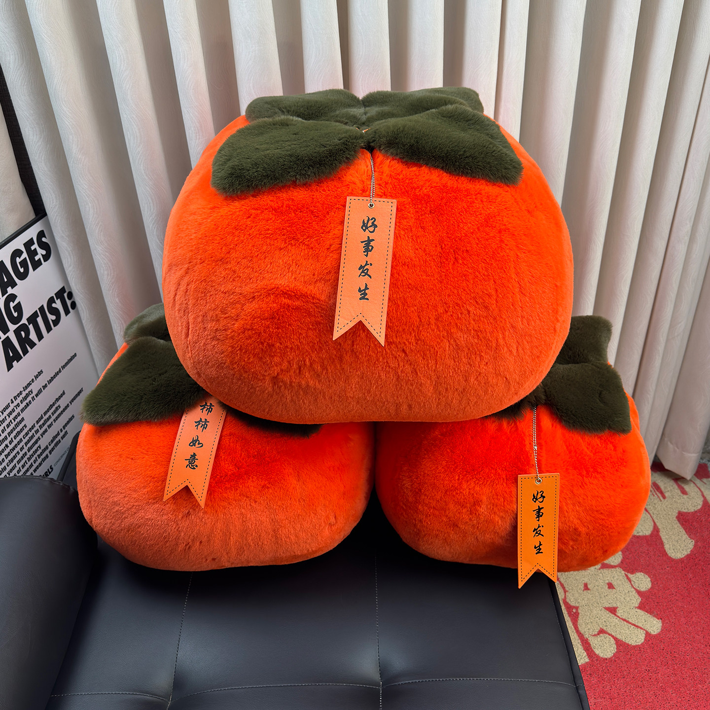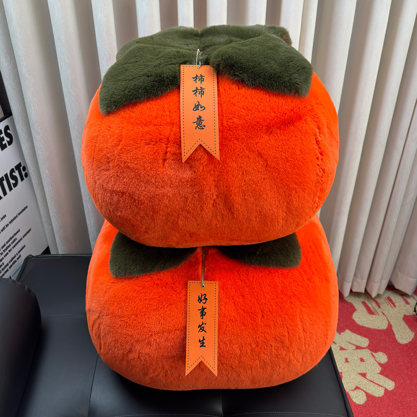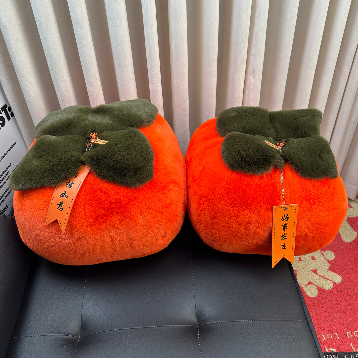 📚 仿皮草可爱柿子毛绒玩具大号抱枕挂件好事发生柿柿如意创意礼物