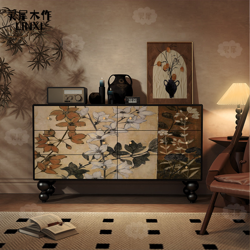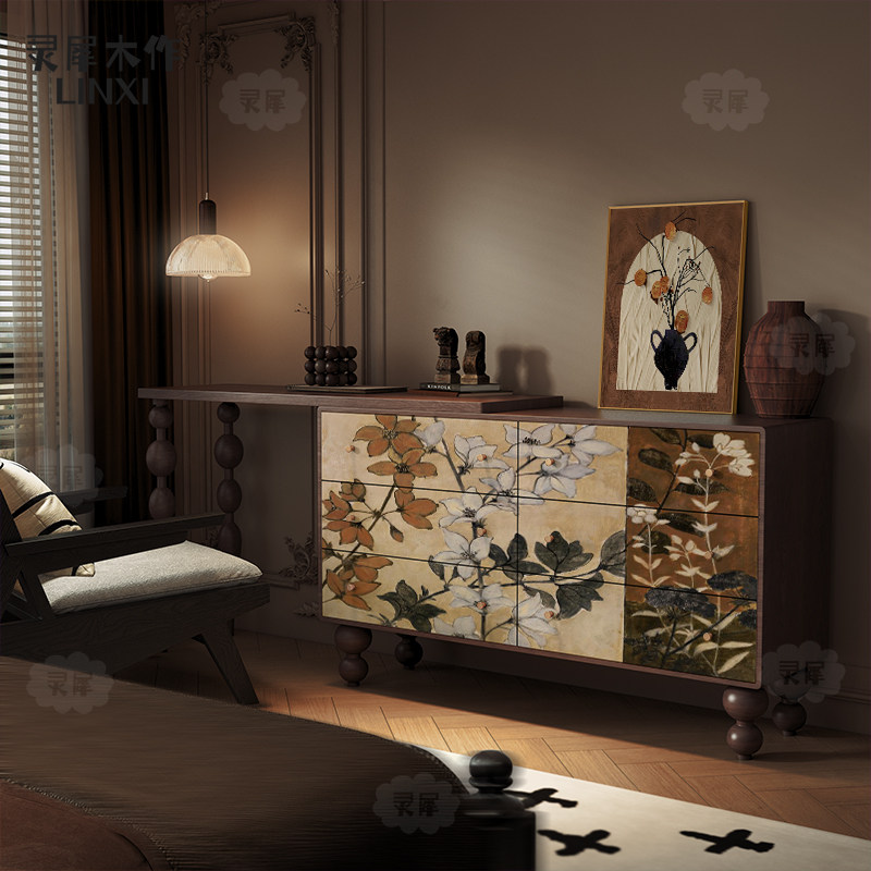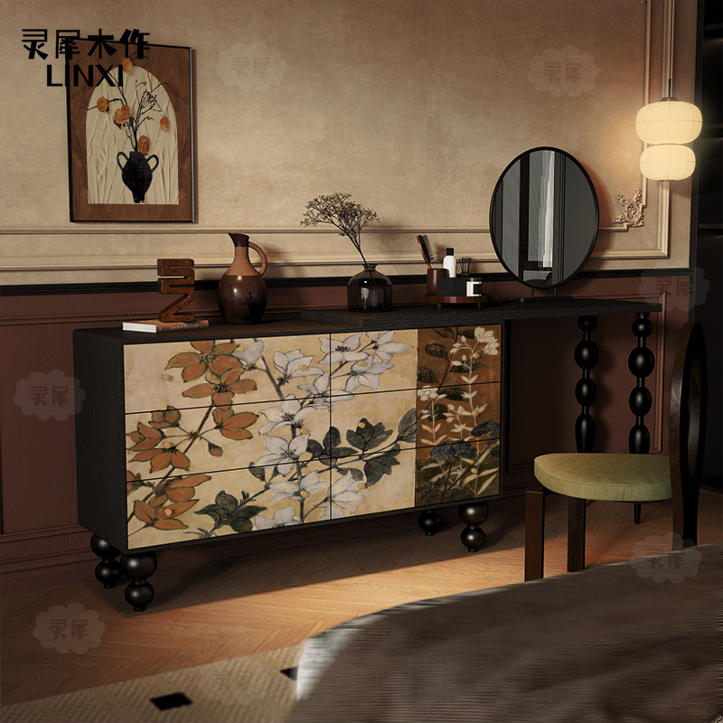 📚 法式中古风实木六斗柜梳妆台搭台收纳柜卧室储物柜客厅靠墙置物柜