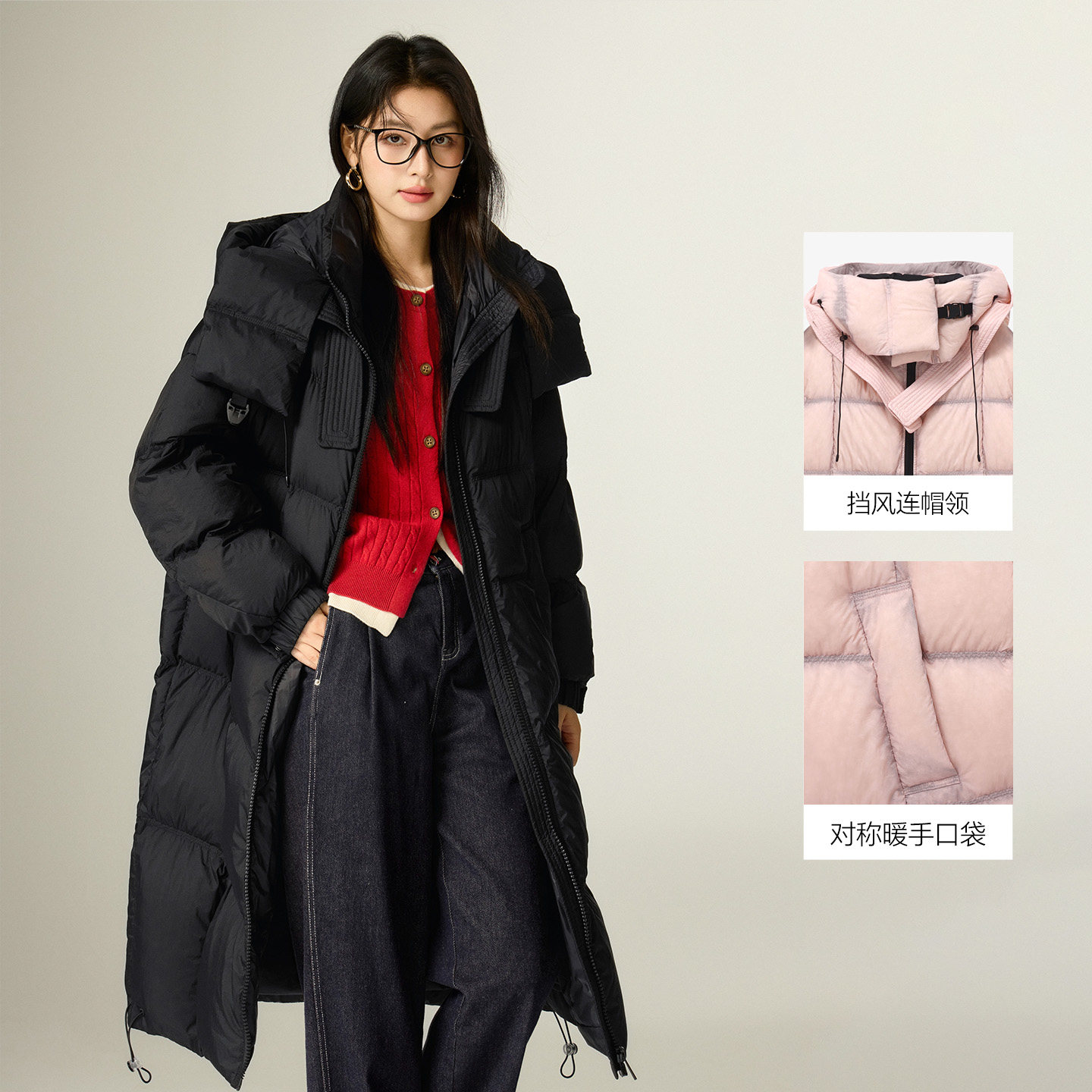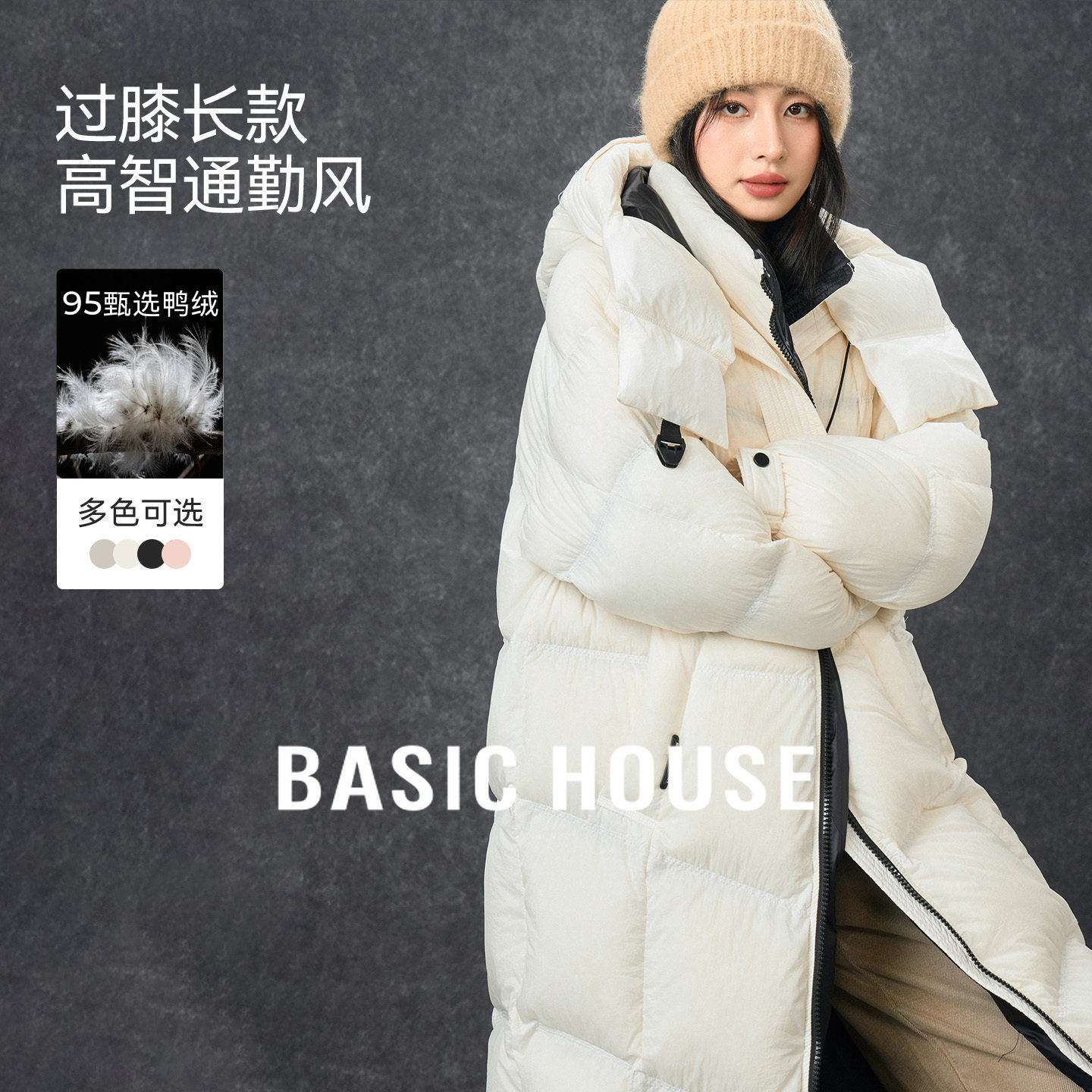 📚 Basic House/百家好连帽长款白鸭绒外套韩版加厚保暖羽绒服冬季女